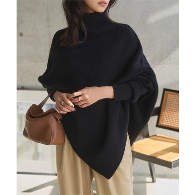 ハイネック アシンメトリードルマンニット ハイネック