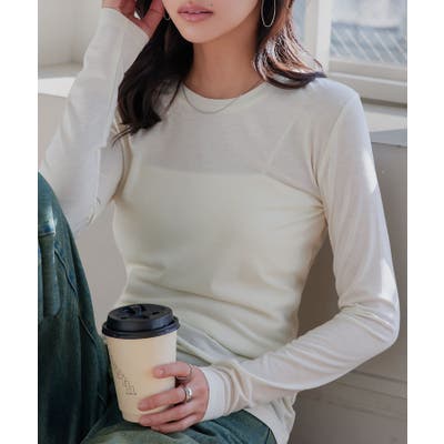 滑らかな質感で素肌にやさしくフィットするシアー素材。保温性をキープしストレッチ性もある柔らかさが心地よい一枚。単品でもレイヤードスタイルでもデイリーに活躍してくれるクルーネックカットソーです。