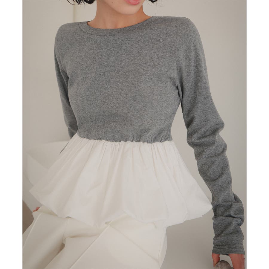 ペプラム切替バルーンコットンロンT[C7801] ペプラムトップス ロンt