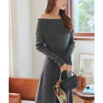 着方色々 オフショルにもなる フィット&フレアニット長袖