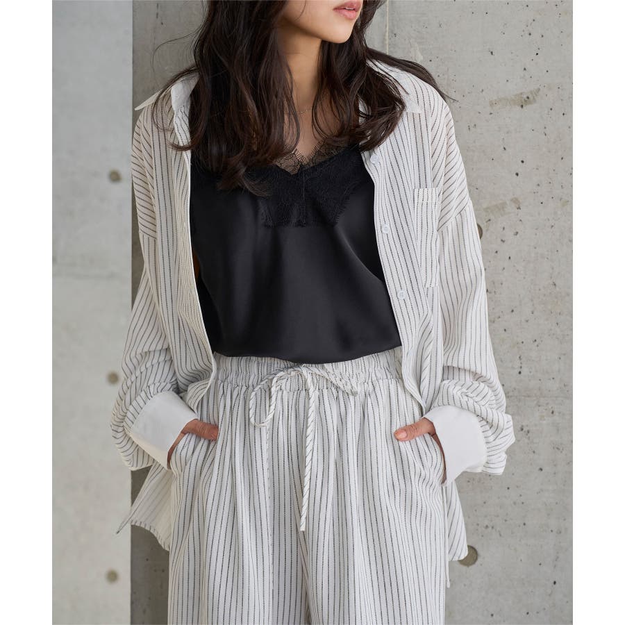 ストライプ柄がスタイリッシュで軽やかな薄手のシャツ素材。メンズライクなオーバーシルエットのルーズ感がこなれた表情に。見せインナーとのレイヤードやビスチェ合わせなどトレンドスタイルにアレンジも楽しめます。