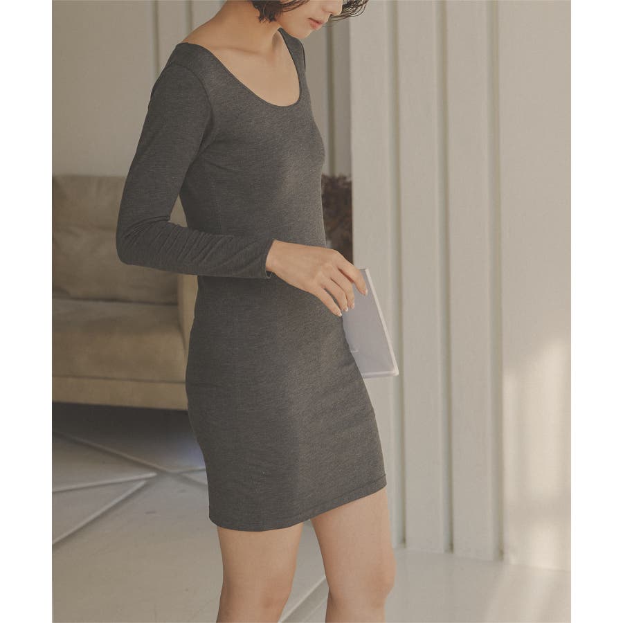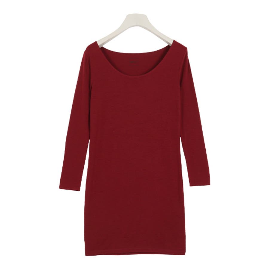 おなか・腰・ヒップまでしっかり包み込んであたたかなワンピース丈。