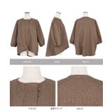 少し光沢のあるつるっとした素材を使用。ゆとりを持たせた身幅、バルーンスリーブで、ゆったりシルエットのインナーでも合わせやすい◎。後ろはヒップが隠れる着丈なのもポイントです。