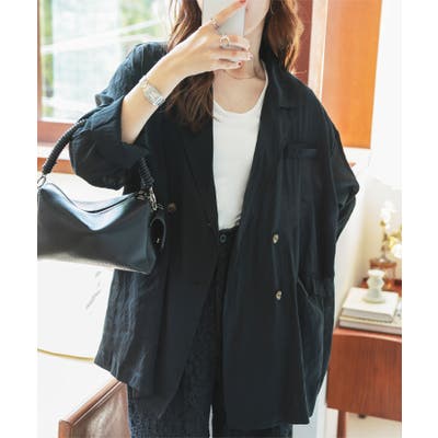 ほんのりシボ感のあるシアー素材。オーバーサイズのシルエットでリラクシーなこなれ感を演出してくれるダブルジャケットデザイン。着るだけでサマになりシャツ感覚でさっと羽織れるサマージャケットです◎