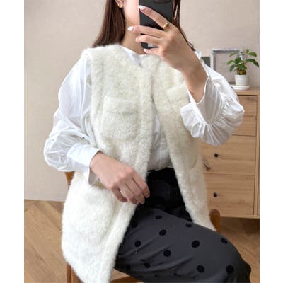 もこもことした暖かみのあるボア風素材。ライトアウター代わりにもなるジレベストはさっと一枚プラスするだけで秋冬スタイルをおしゃれにアップデートしてくれトレンドスタイルに。アクセントのポケットが立体シルエットを生み出し体型カバー効果もうれしいツイードベストです◎