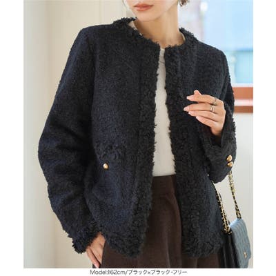 ノーカラーボアトリムジャケット ノーカラー ボア