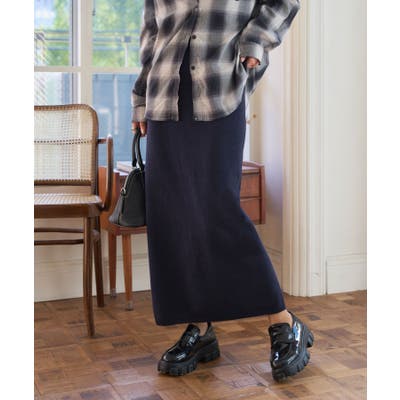 肌当たりやさしいソフトな質感のハイゲージニット。タイトすぎないIラインシルエットでボディラインも程よくカバー。ウエストと裾部分をリブで切り替え、カジュアルにもキレイめにもスタイリングを楽しめるニットスカートです。嬉しいM/Lサイズ展開◎