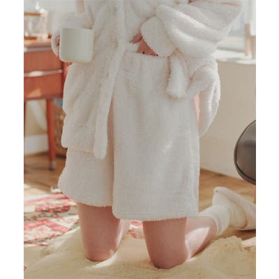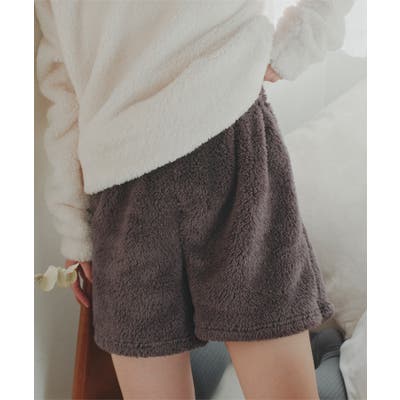 ウエストは総ゴム+内紐仕様で調整しやすく、締め付けの少ないリラックスしたフィット感。ヒップや太ももまわりには適度なゆとりをもたせ、体型をさりげなくカバーしながら動きやすいシルエット。丈は短すぎないショート丈で、脚をすっきり見せつつ安心感のある絶妙なバランス。軽くてあたたかいボア素材が心地よく、リラックスタイムにそっと寄り添う一枚です。