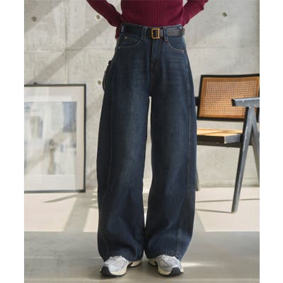 あったか裏シャギーワイドカーブデニムパンツ あったか 裏シャギー