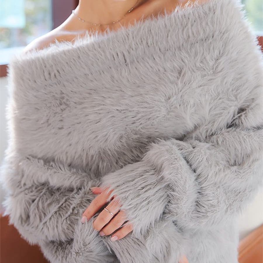 ミックスシャギーフェザーオフショルニットトップス[N1147]