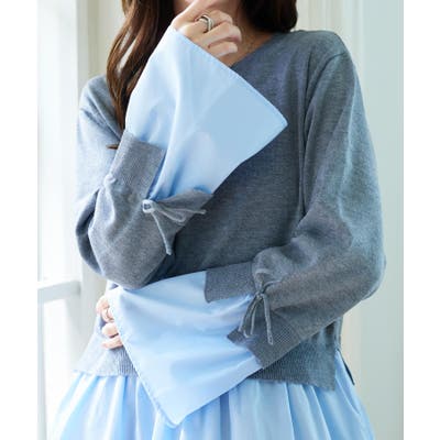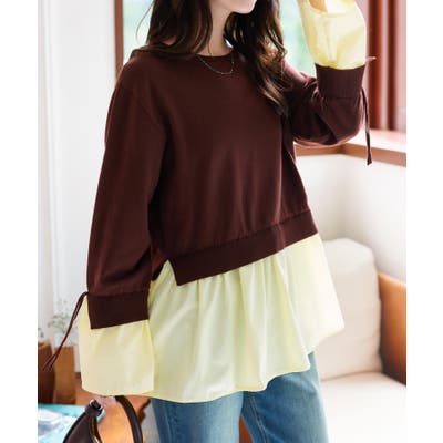 シャツレイヤード風ニットトップス シャツレイヤード風 ニット