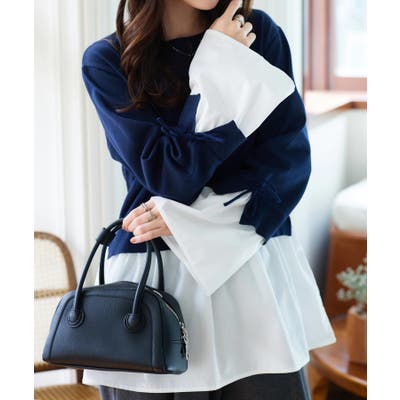 薄手のニットと程よくハリ感のあるシャツ素材のドッキングデザイン。ふんわりと広がるシルエットにボリューム感のあるフレアスリーブがスタイリングにメリハリをプラス。体型カバーも叶えてくれロングシーズン着ていただける一枚です。