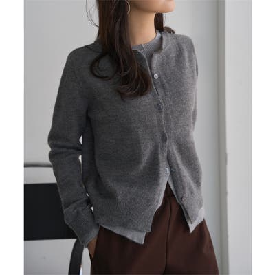 もちっと程よく厚みのあるニットカーデ。コンパクトながら身体のラインに響きにくく肌にやさしくフィット。シンプルながら洗練された大人のこなれ感でオフィスからデイリーまで様々なシーンの装いにマッチするクルーネックニットです。
