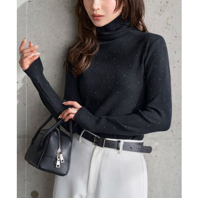 ホットフィックスドットニットトップス[N1337] タートルニット リブニット