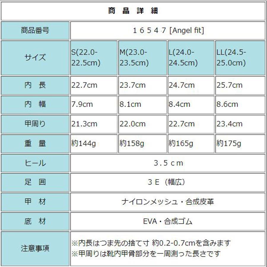 | サイズ | S(約22-22.5cm) / M(約23-23.5cm) / L(約24-24.5cm) / LL(約25cm) |
