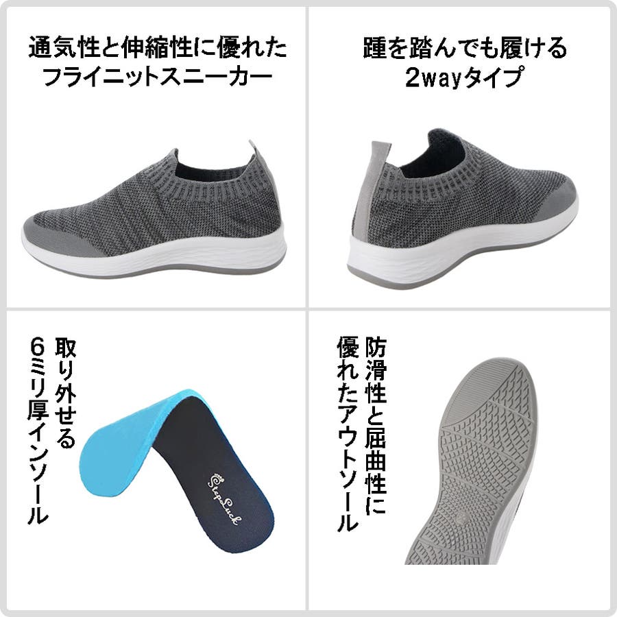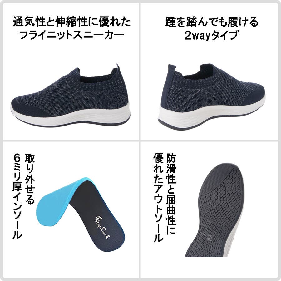 踵を踏んでも履ける 2way タイプのスリッポンで脱ぎ履きかんたん、上履きとしても使用でき、医療・介護など脱ぎ履きの多い職場や生活にも活躍してくれます。