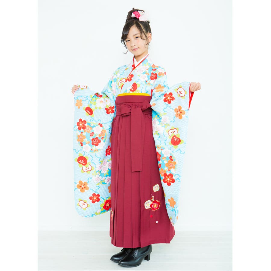 二尺袖着物 京都「花ひめ」 2点セット 鹿の子青 ジュニア 伊達衿付