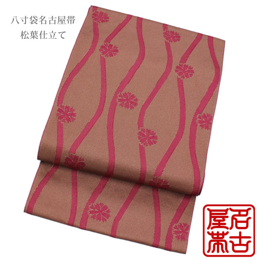 八寸袋名古屋帯 立涌花・ピンク