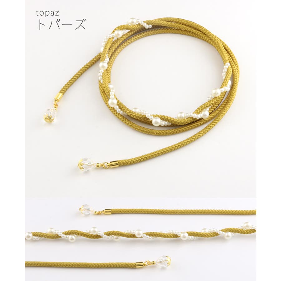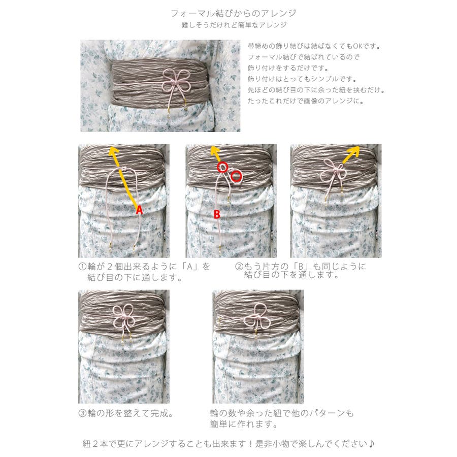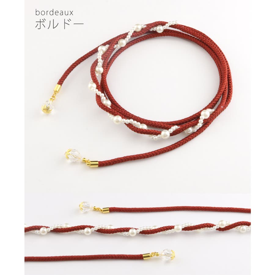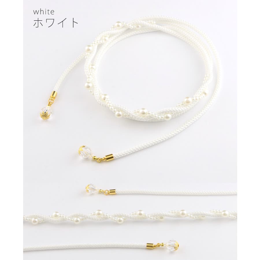 【カラー】全12色ホワイト:シンプルな白ベビーピンク:白く淡いピンクベージュローゼ:くすみピンク淡アッシュローズ:くすみピンク濃※ベビーピンク→ベージュローゼ→アッシュローズの順番で濃くなっていきます。ラベンダーアイス:白く淡い紫ローズタンドル:やや紫がかったピンクボルドー:濃いめの深い赤トパーズ:濃い赤みのある黄スカイブルー:鮮やかで明るい青モスグリーン:落ち着いた苔色シルバー:光沢のある銀色ブラック:シンプルな黒【サイズ】長さ:約156cm※商品の仕様上、多少伸縮しますので誤差がある場合があります。【材質】ポリエステル100%【ご注意ください】本商品にはパール調の飾りが付いています。そのため、フォーマル結びなどをした後に帯締め/飾り紐を回すことが出来ません。無理に回そうとした場合、帯が傷ついたりパール調の飾りが取れたり、破損の原因となります。お取り扱いにはご注意ください。