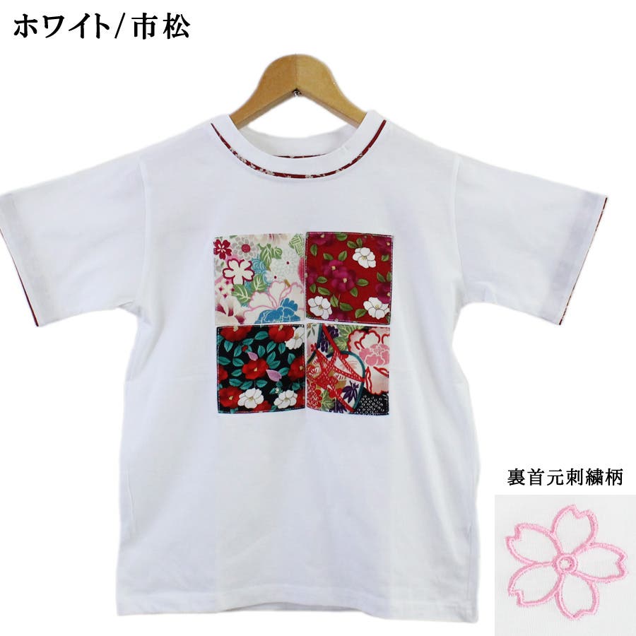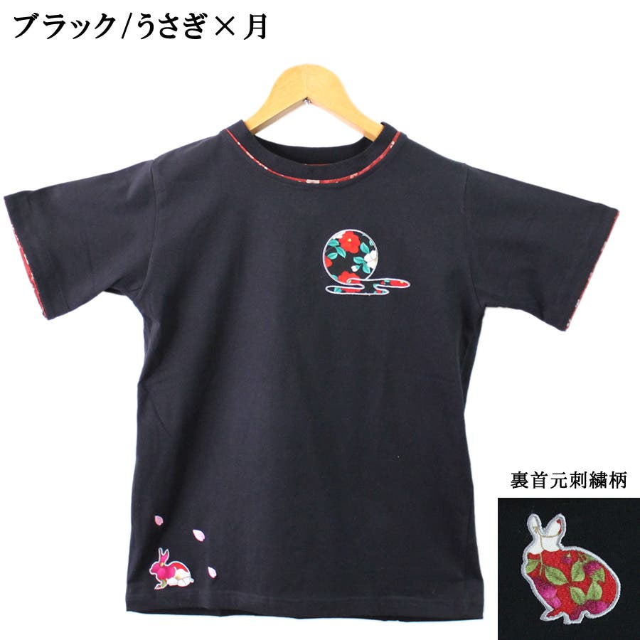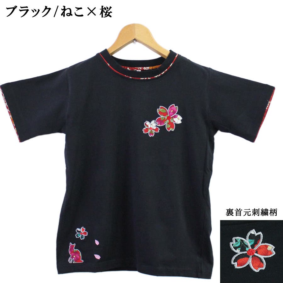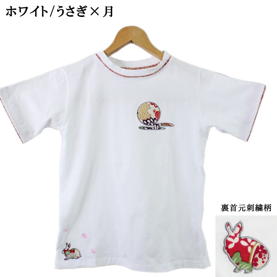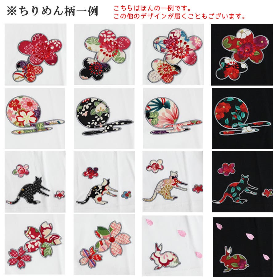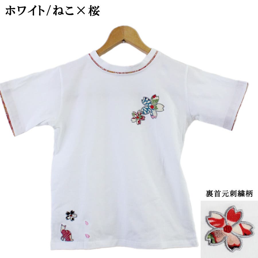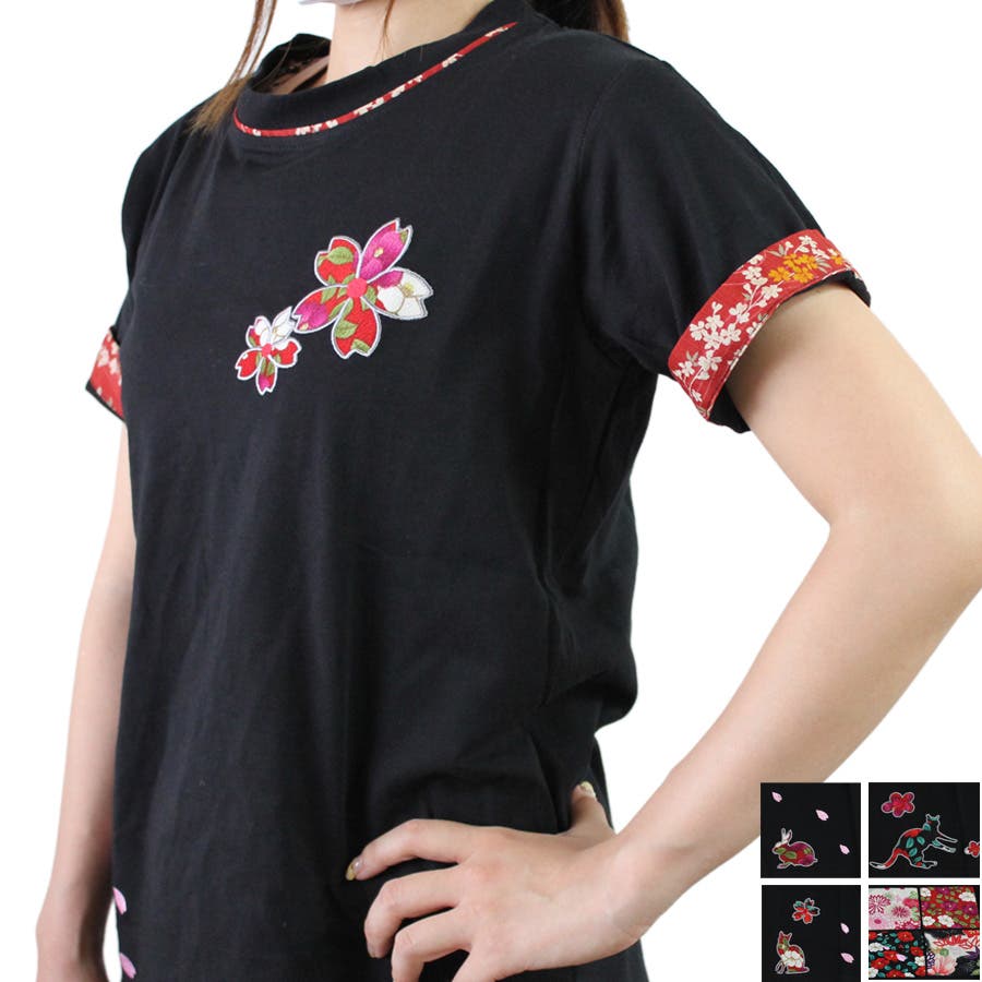 レディース 刺繍 ちりめん 和柄 Tシャツ 白 黒