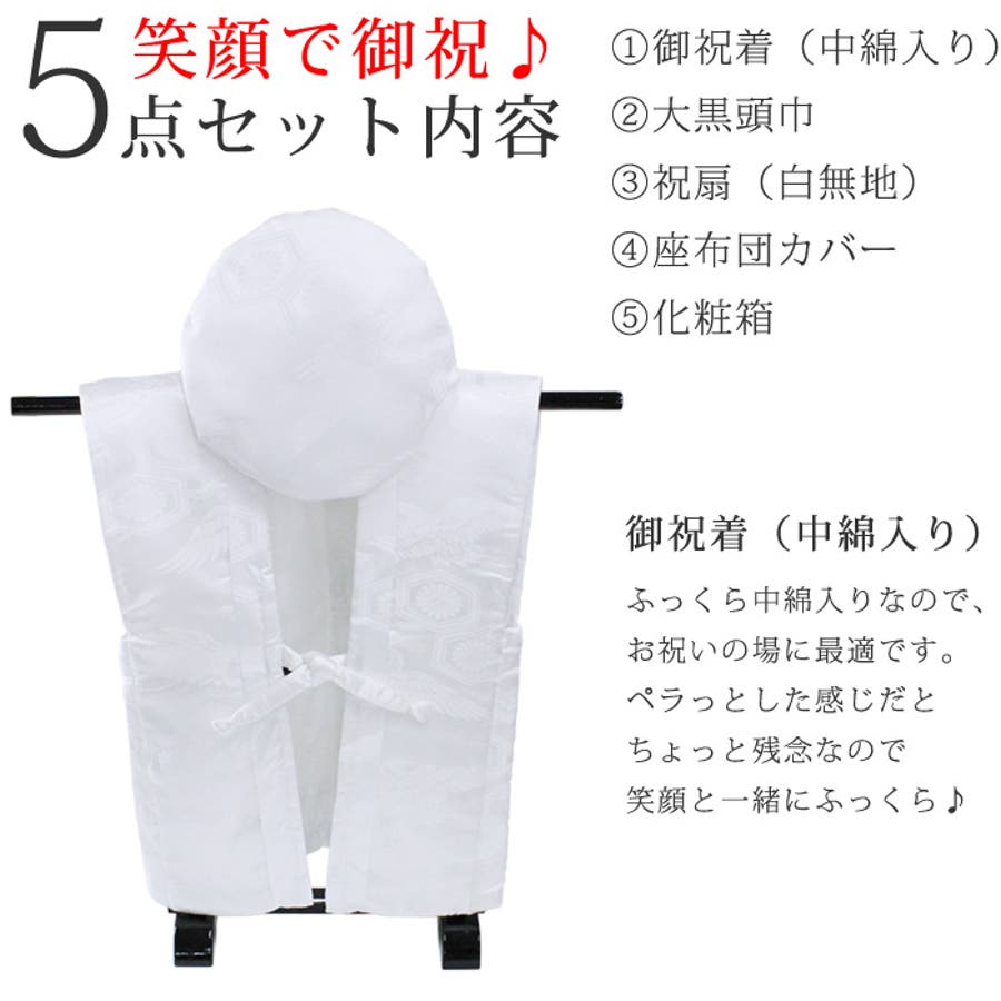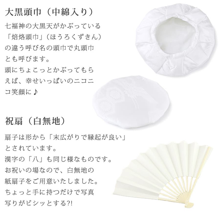 ①御祝着:身丈72cm、肩幅56cm、肩口33cm、紐32cm