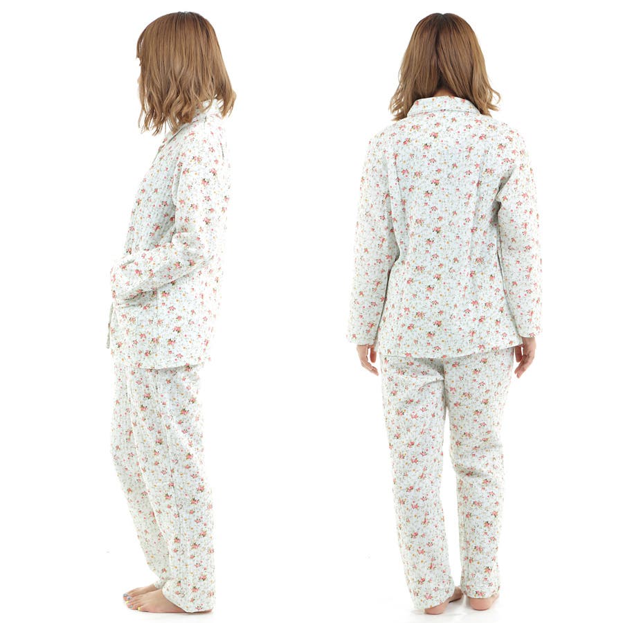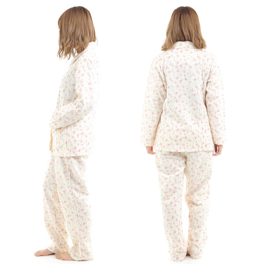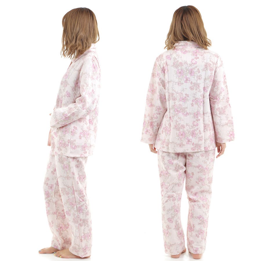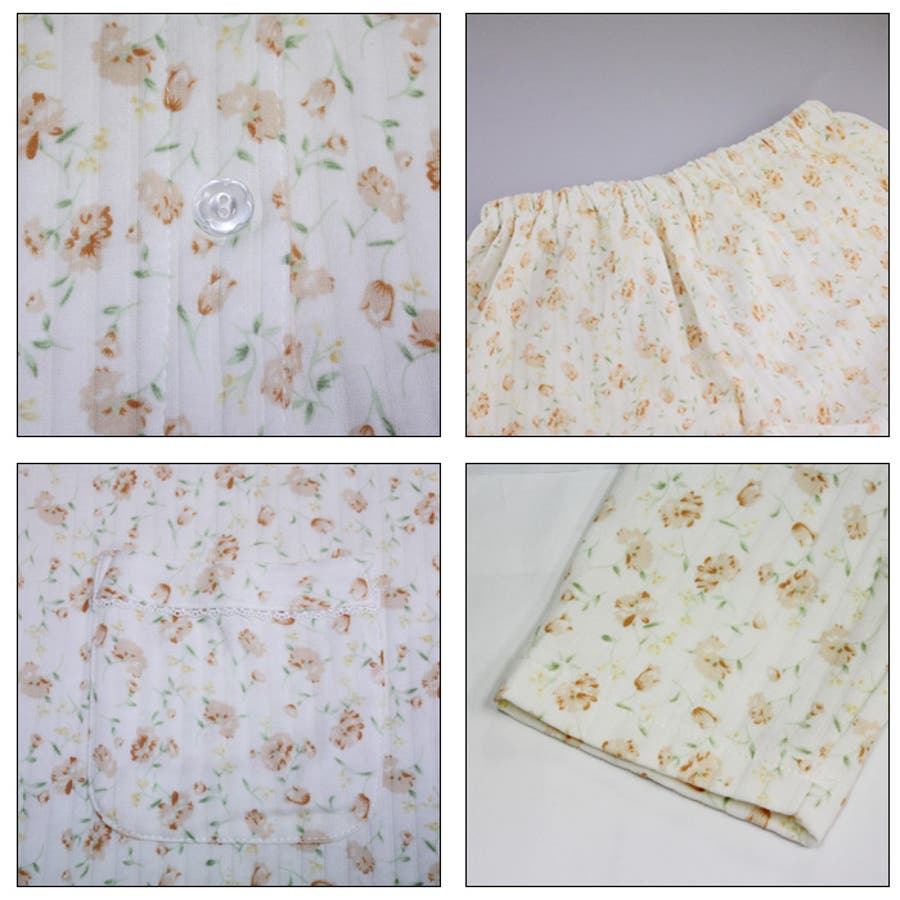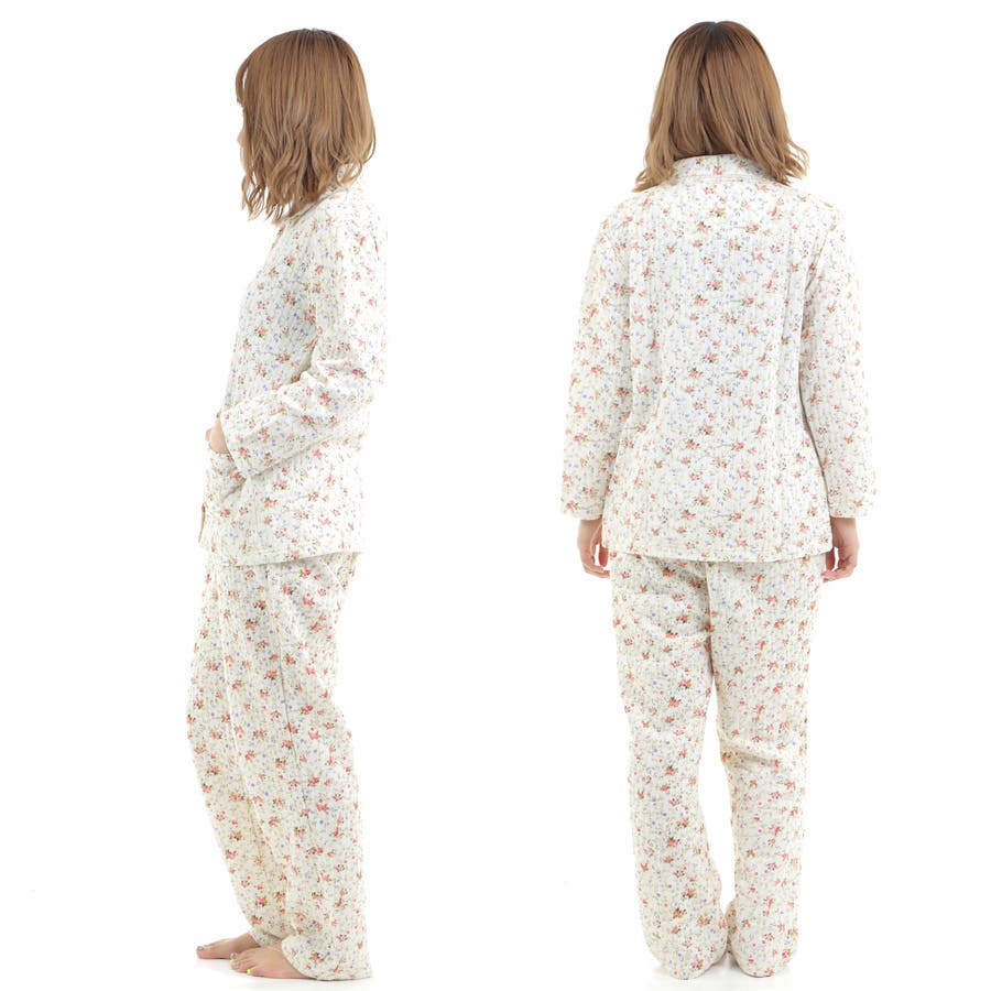 キルティング生地とレトロな花柄がどこか懐かしさを感じるパジャマで、生地も柔らかく、春~初夏にかけてピッタリです!