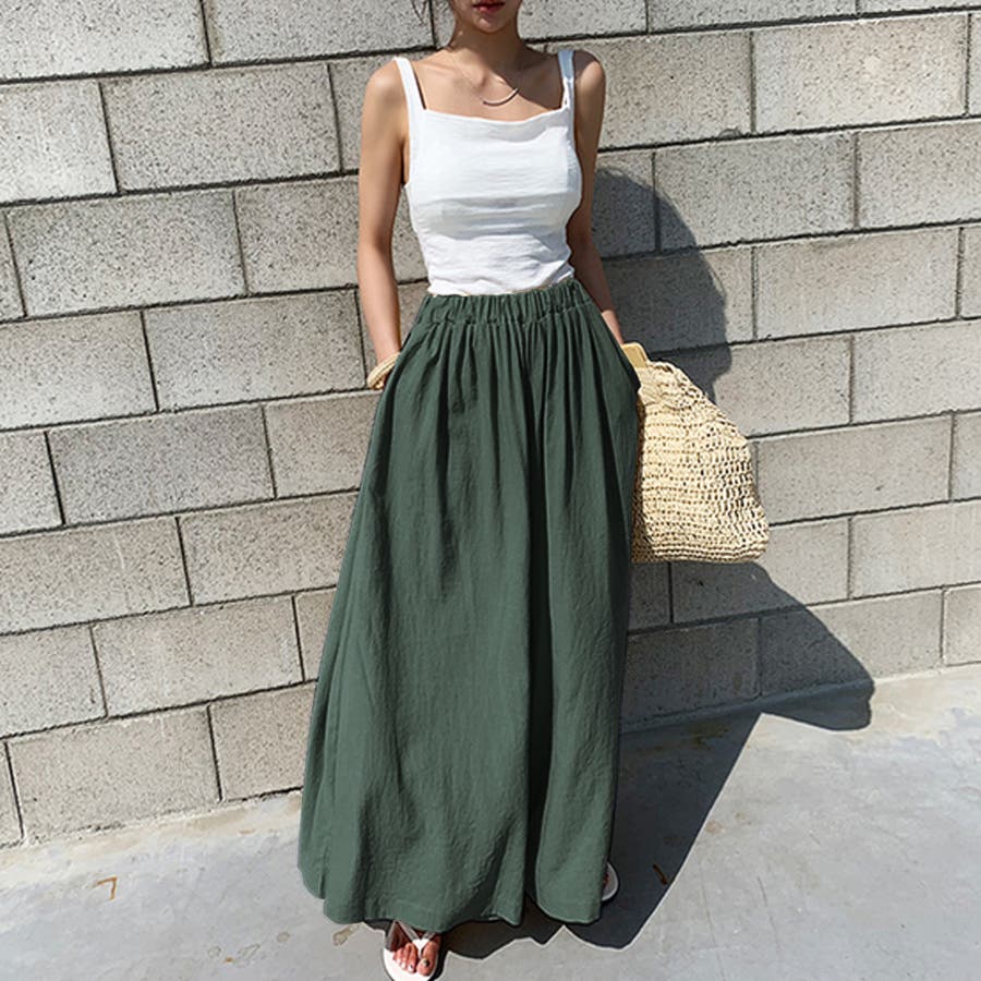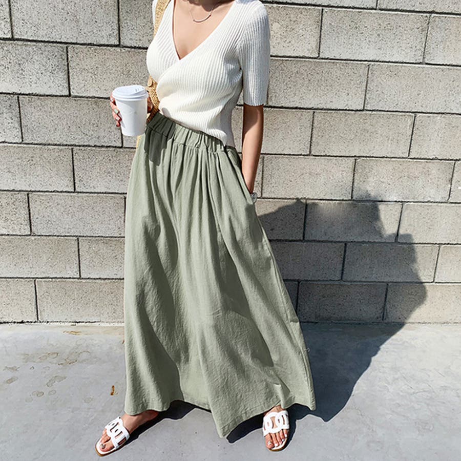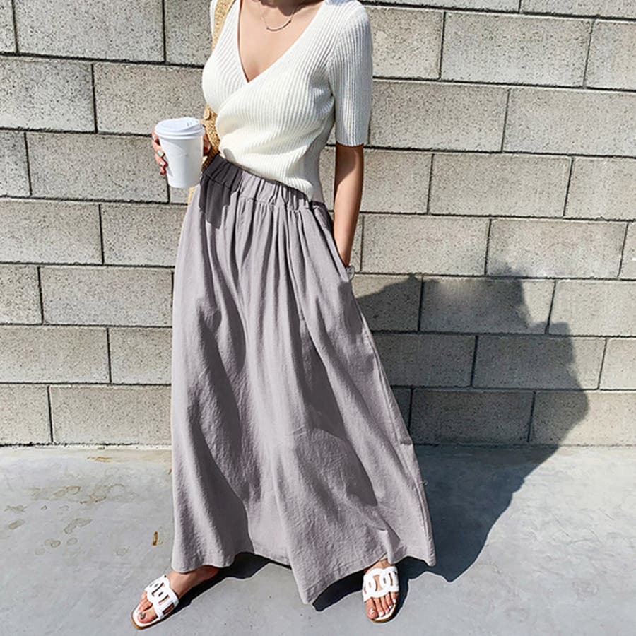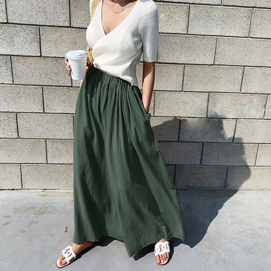投稿日:2020.08.03見た目夏にピッタリ!ただ真夏は暑いかもな生地。丈は、低身長でくるぶし!