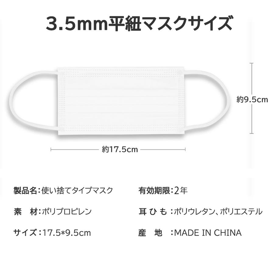 耳のゴムが広くなっているので、痛くならないので、いいと思います。さん (50代以上 / 男性 )購入アイテム:カラー 3.5mm平紐タイプマスクサイズ 大人用 - 必需品