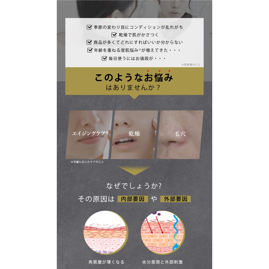 3.肌に残った美容液を優しく押し込むように肌になじませてください。肌のうるおいを保つために毎日のご利用をおススメします。