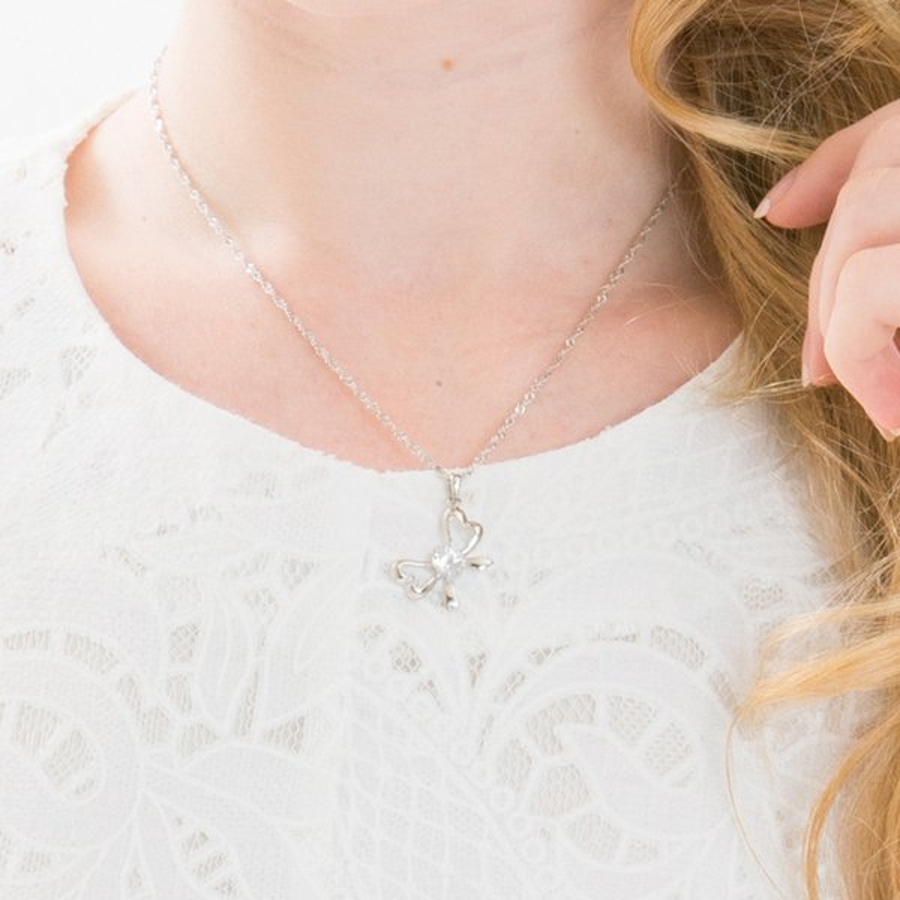 ハートリボンキュービックジルコニアネックレス【LACORDE】