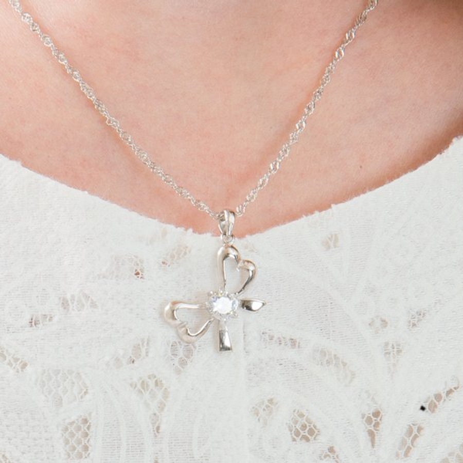 ハートリボンの中央で輝きを放つキュービックジルコニア。