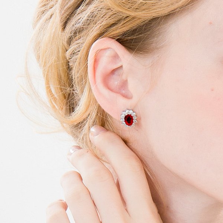 輝きを放つルビーカラーとキュービックの相性が良く上品で、高級感溢れるピアス。