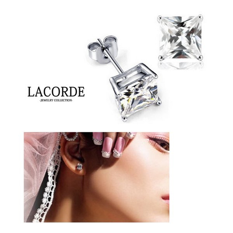 スクエアキュービックジルコニアピアス【LACORDE】