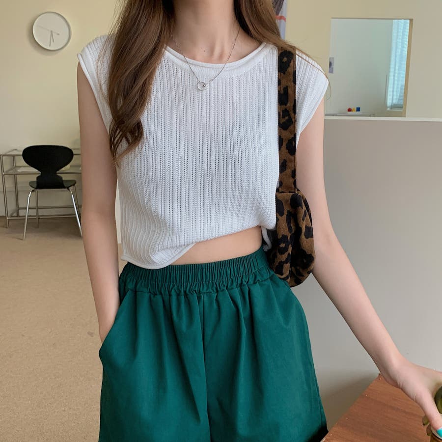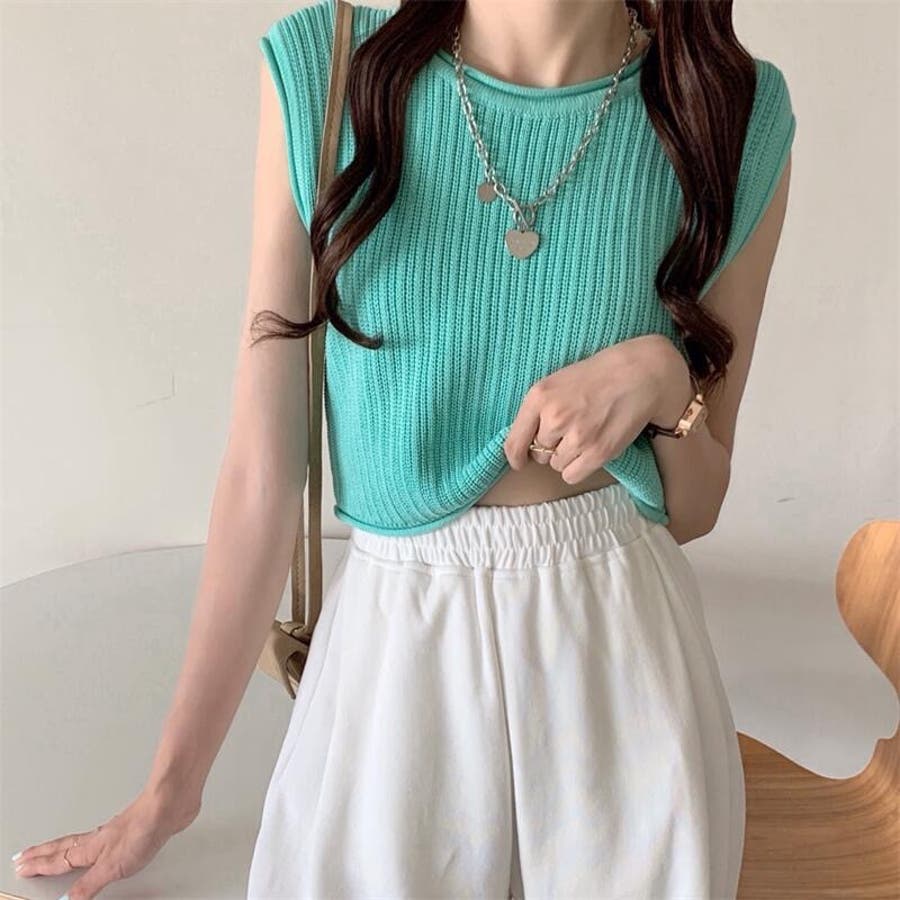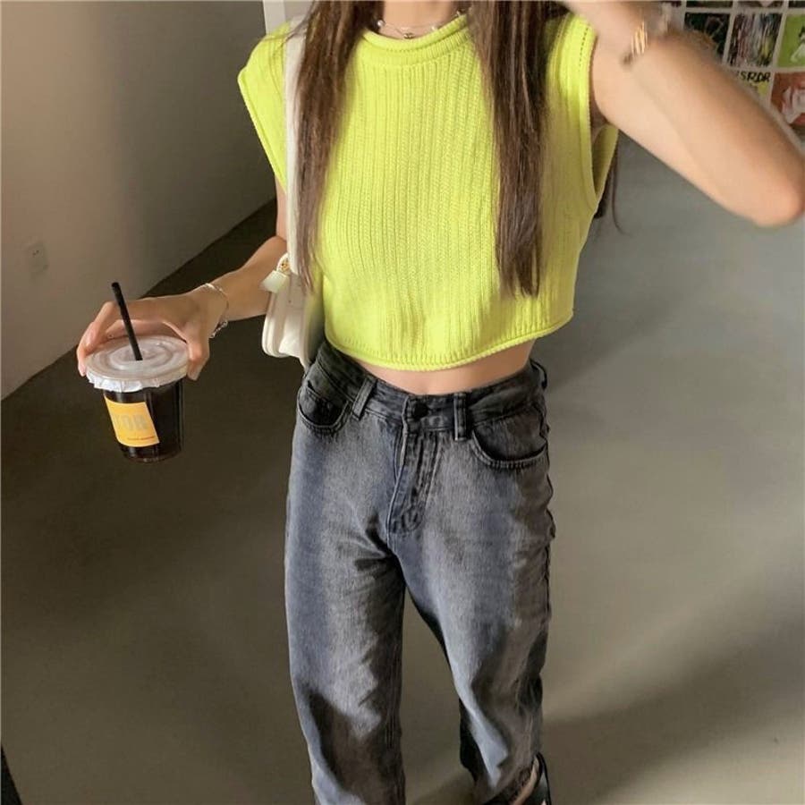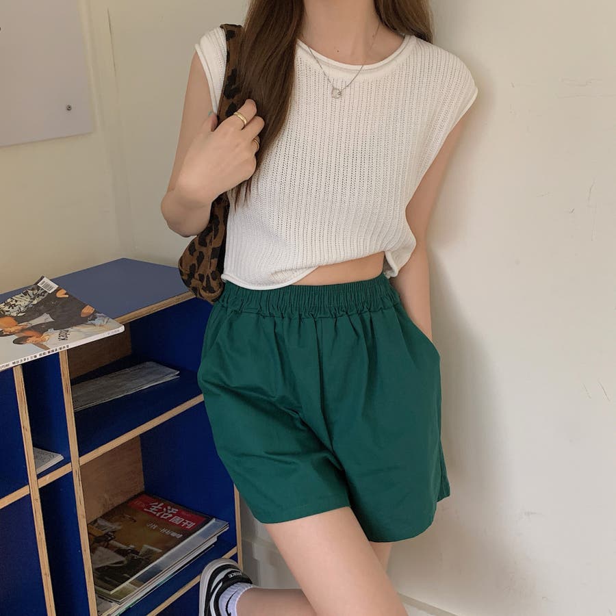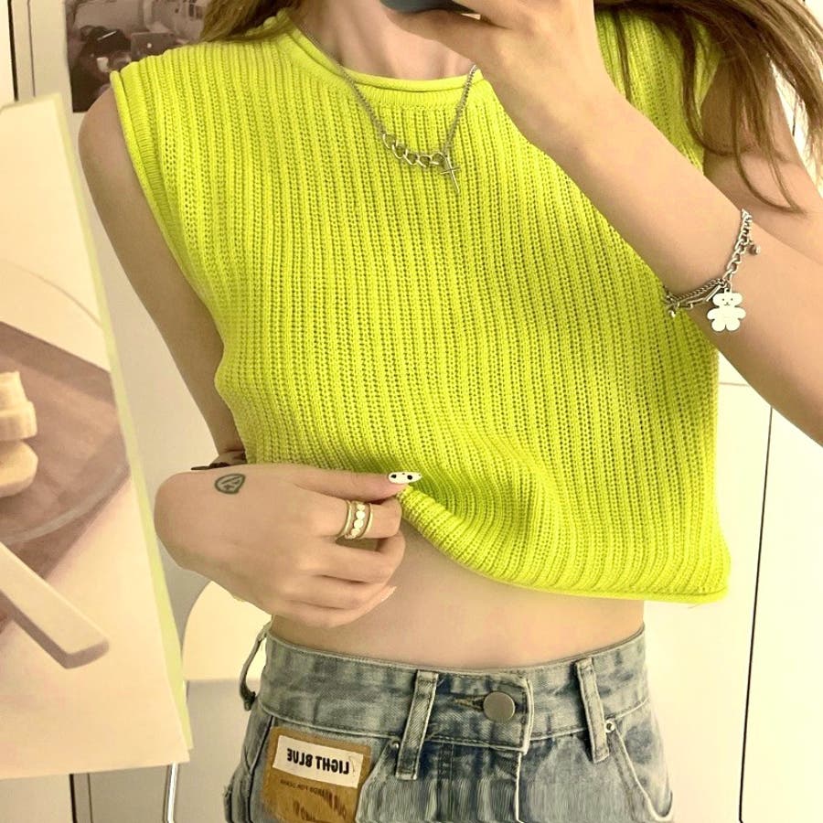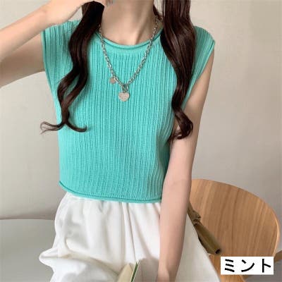 カラーものがトレンドの今季に一着はもっておきたい夏のコンパクトニット。