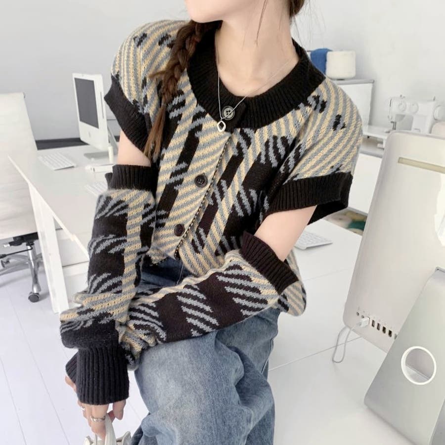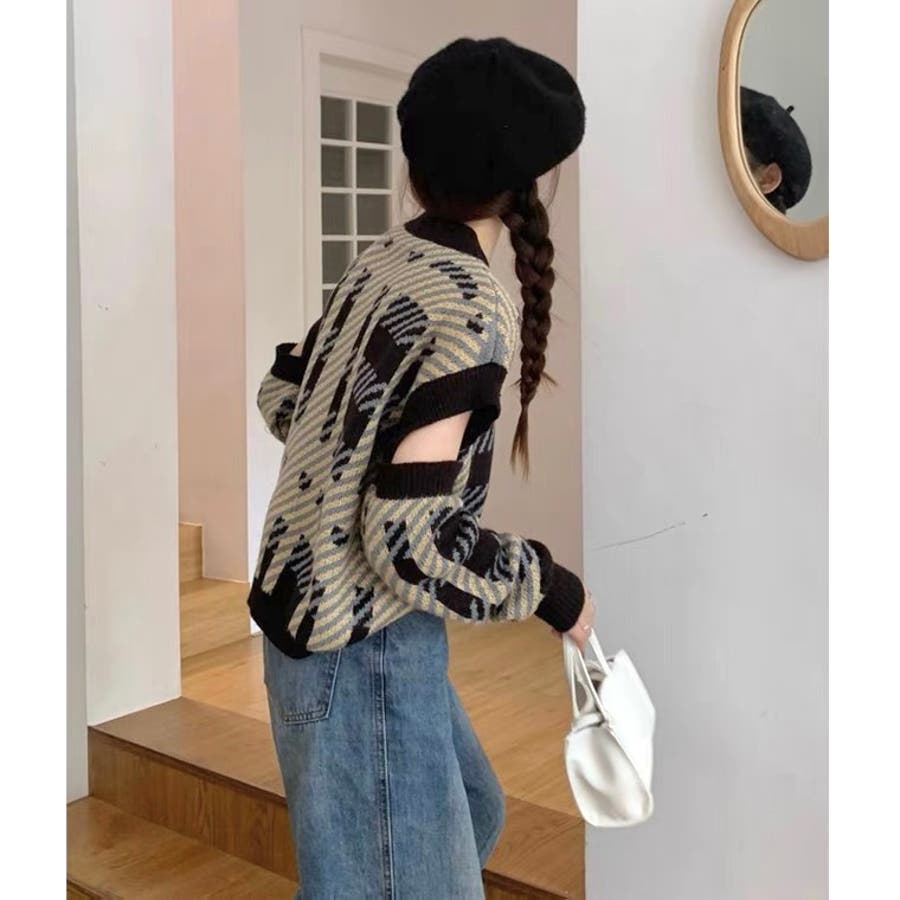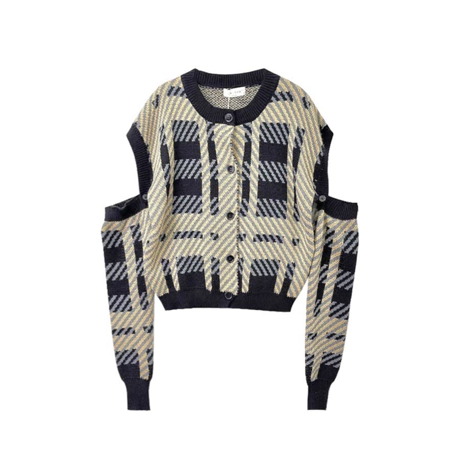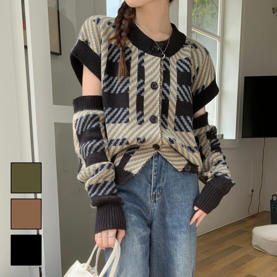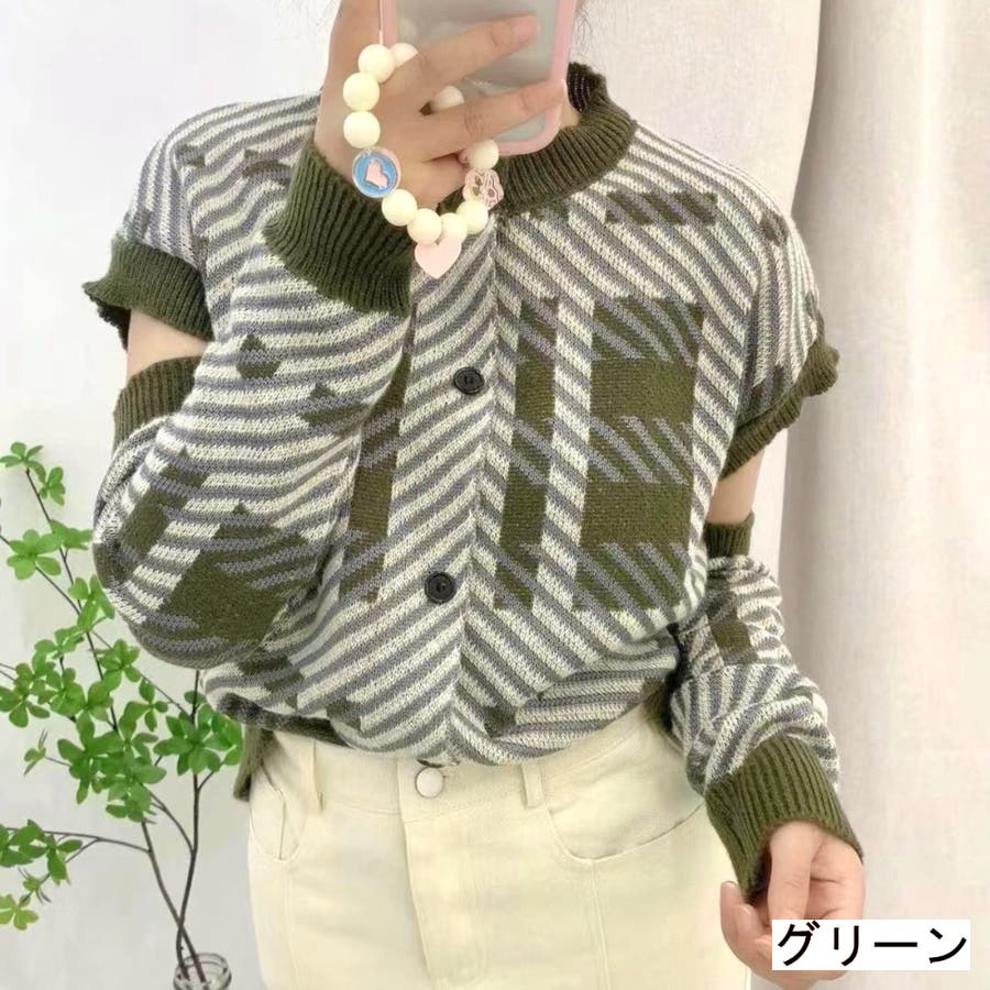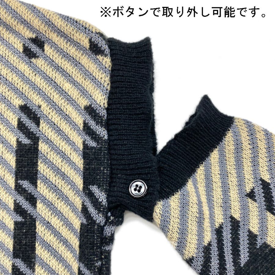 袖部分が二の腕からボタンで取り外しができるので2WAYで楽しめる優秀ニット。