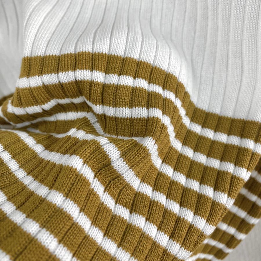 一枚で着こなしをリズミカルに見せてくれるランダムボーダーニットのニットが登場。