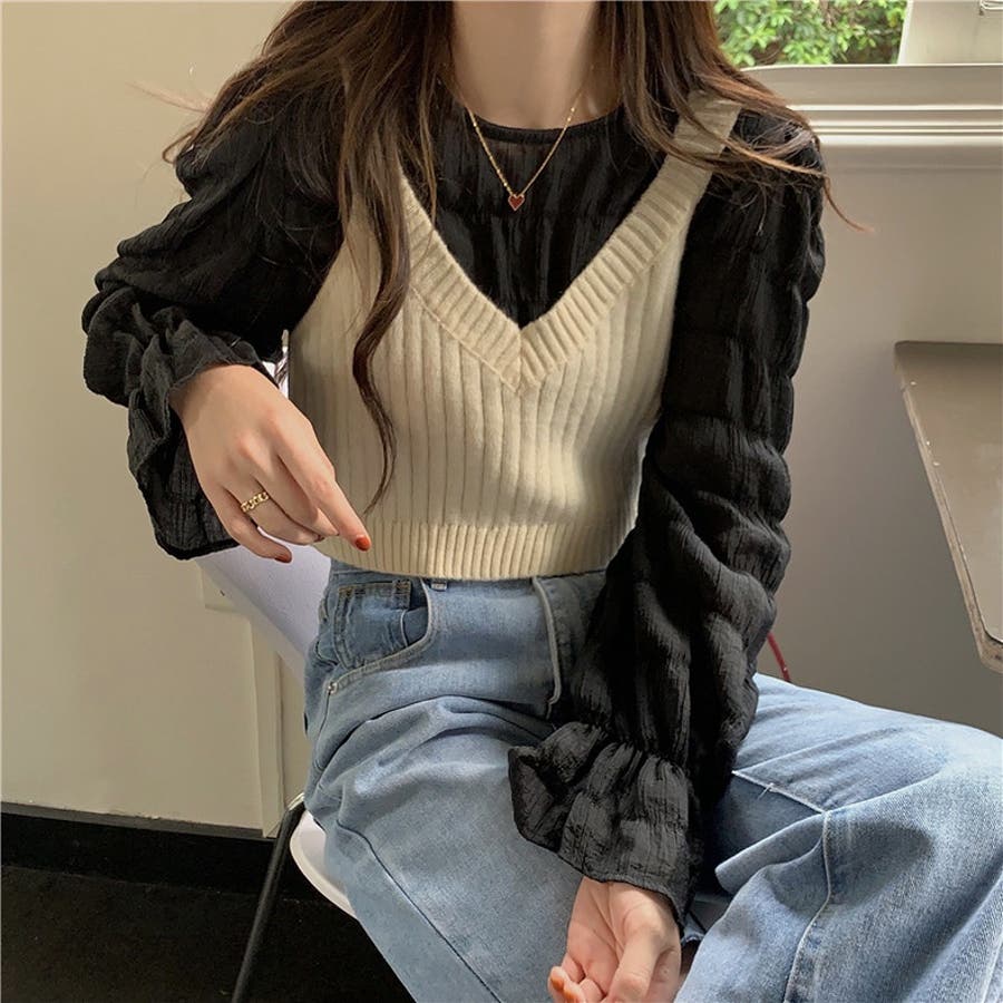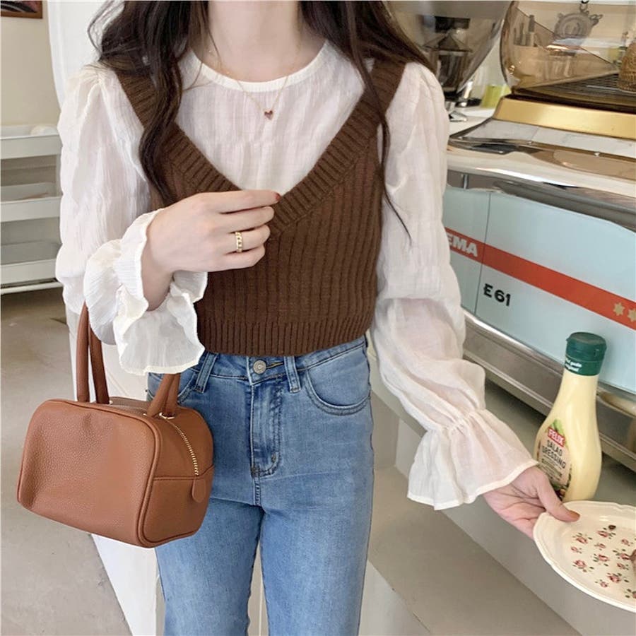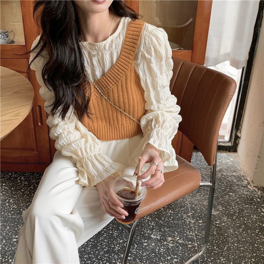 カジュアルなボトムスやワンピースのインナーに合わせても女子力のある主役ブラウスです。