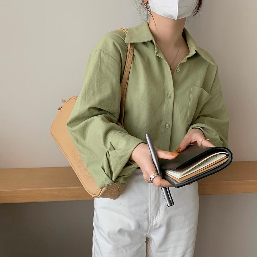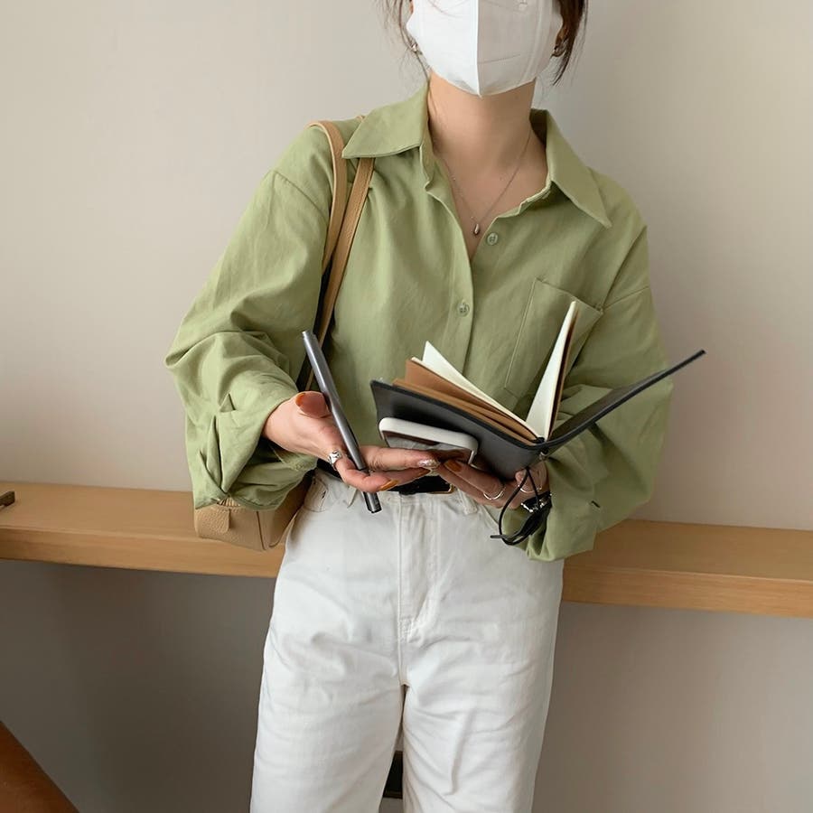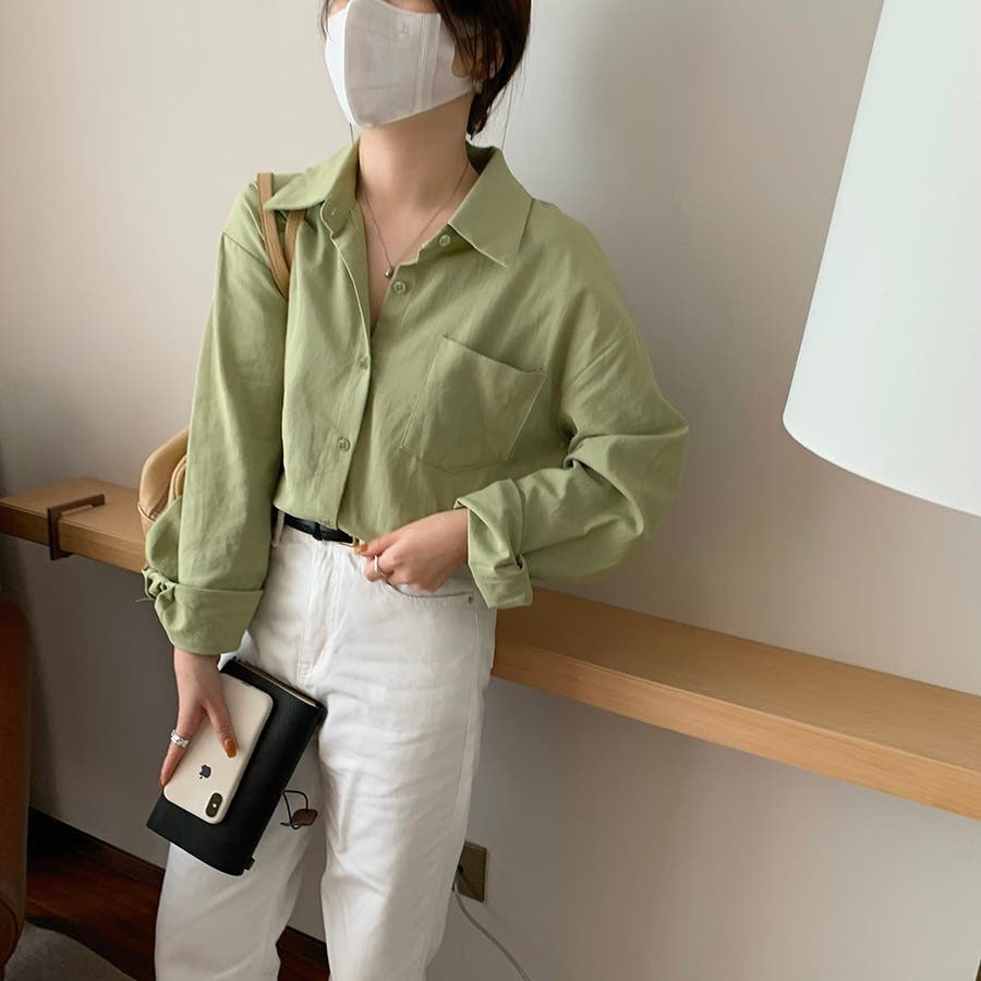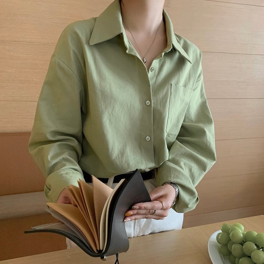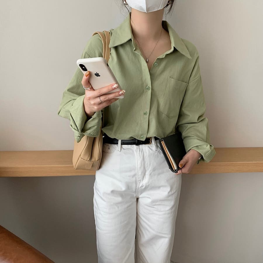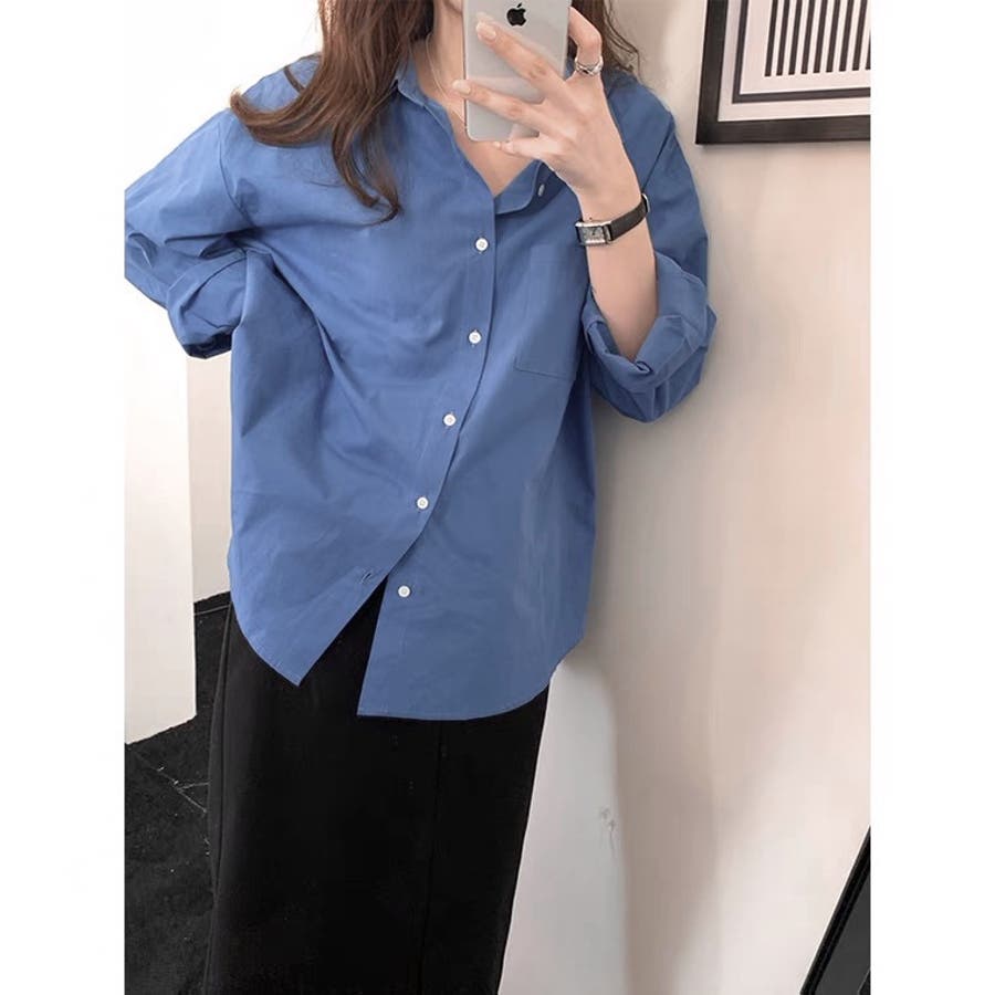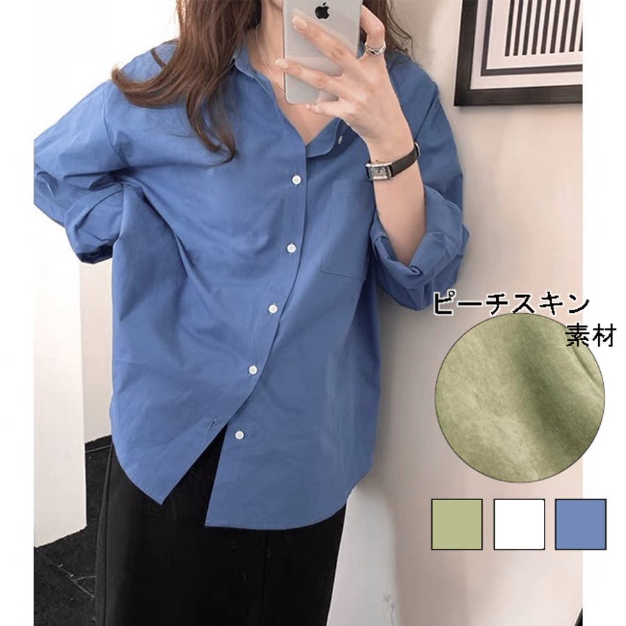 オーバーサイズ ビッグシルエット ゆったり 大きめ 大人 カジュアル 韓国ファッション きれいめ ストリート シンプル 長袖 ポケット付き ピーチフェイス ブラウス トップス はおり レイヤー オフィスカジュアル 春 夏 秋