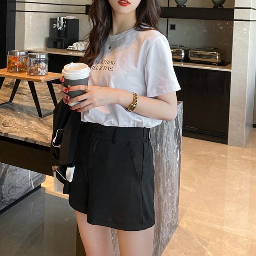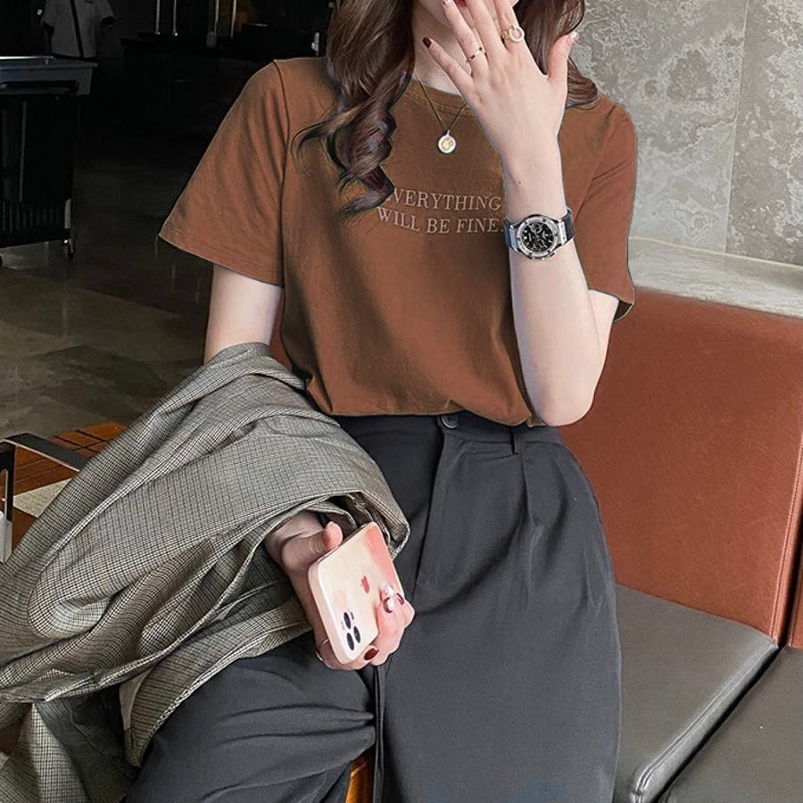 半袖 プリント ロゴ 英字 大人 カジュアル 韓国ファッション 韓国コーデ オフィスカジュアル シンプル きれいめ バイカラー 定番 ゆったり 春 夏 秋