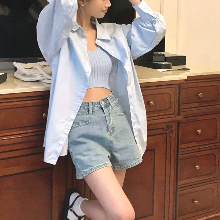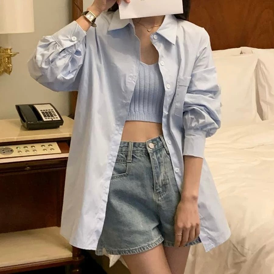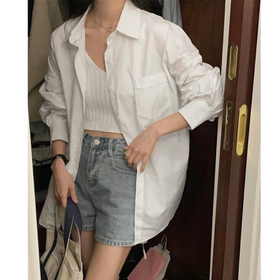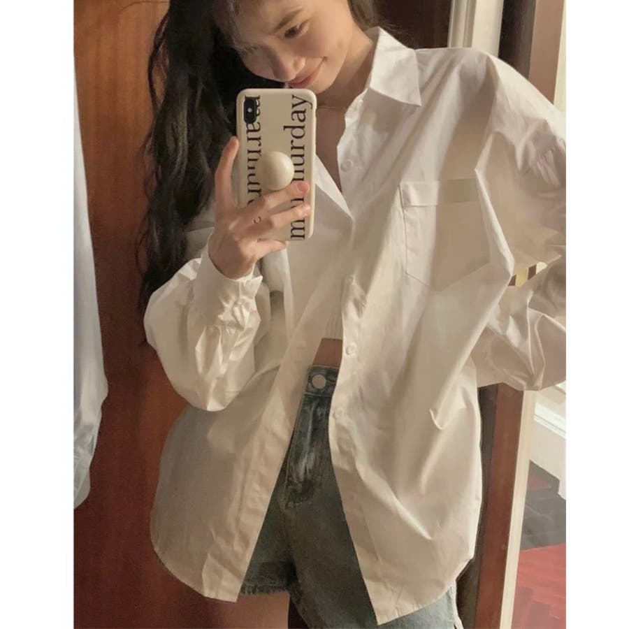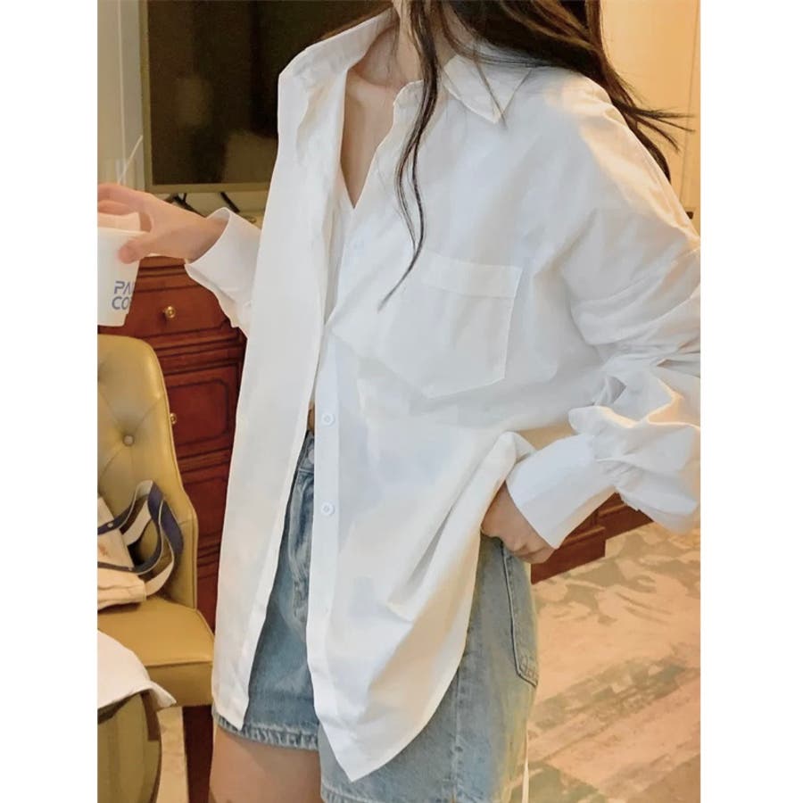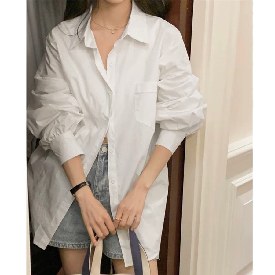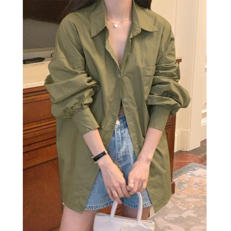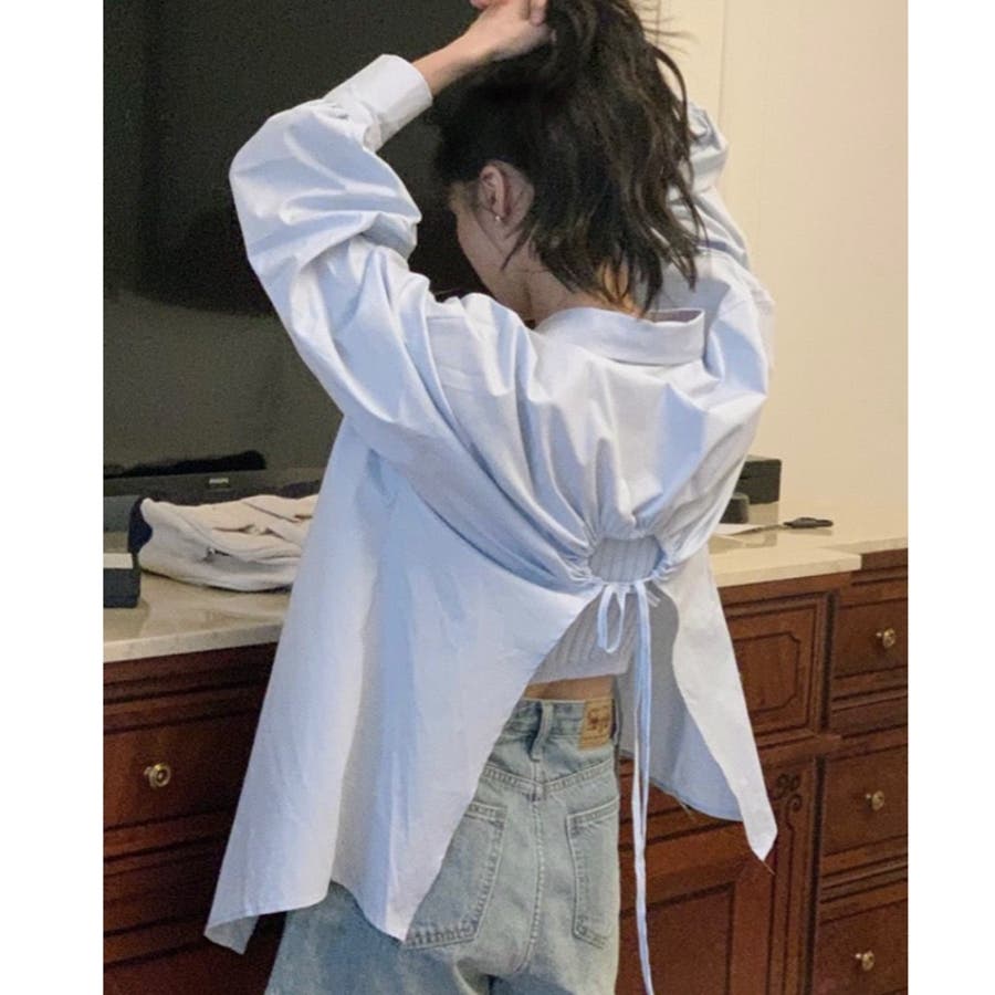 大人 カジュアル きれいめ 韓国ファッション 韓国コーデ オフィスカジュアル 開き見せ 肌見せ ヘルシー バックデザイン ゆったり オーバーサイズ 長袖 無地 ブラウス シャーリング ドローストリング 絞り 20代 30代 40代 春 夏 秋