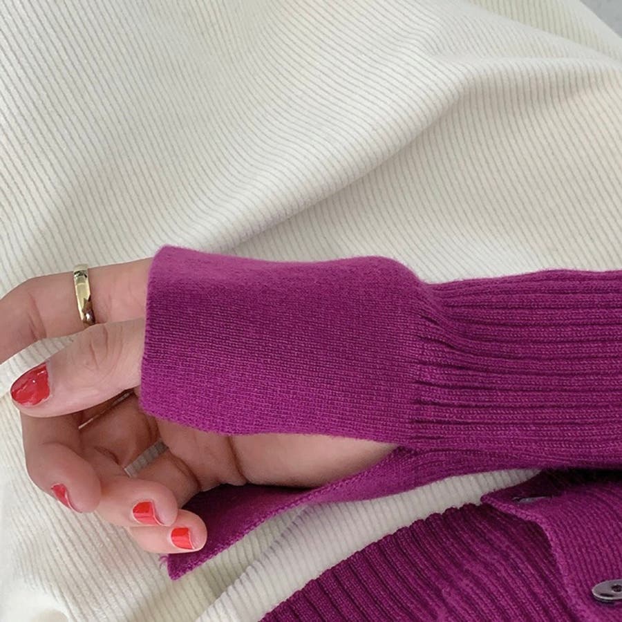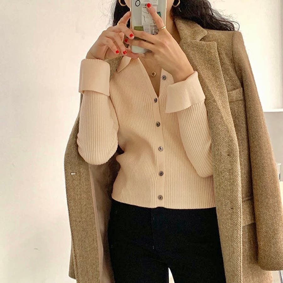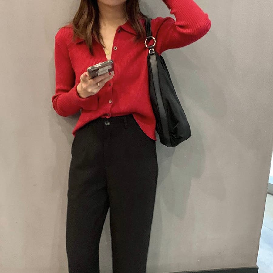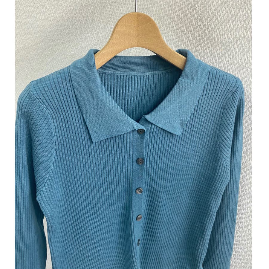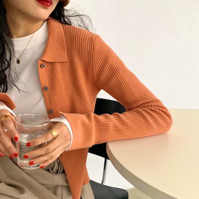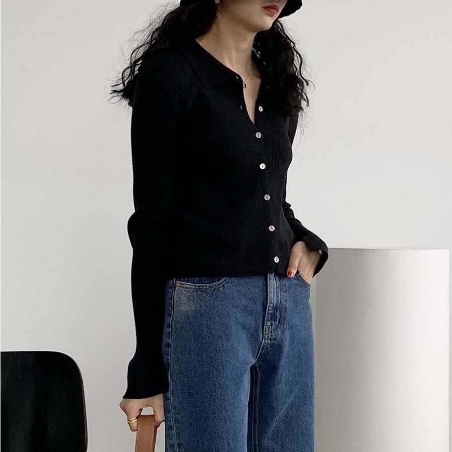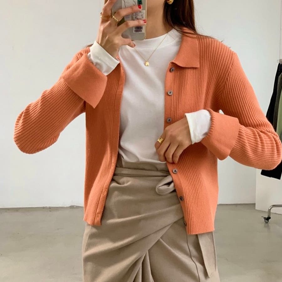 大人 カジュアル きれいめ 韓国ファッション 韓国コーデ オフィスカジュアル ポロシャツ トップス 無地 前開き 長袖 シンプル ベーシック ハイゲージ もちもち 20代 30代 40代 春 秋 冬 カーデ カーディガン