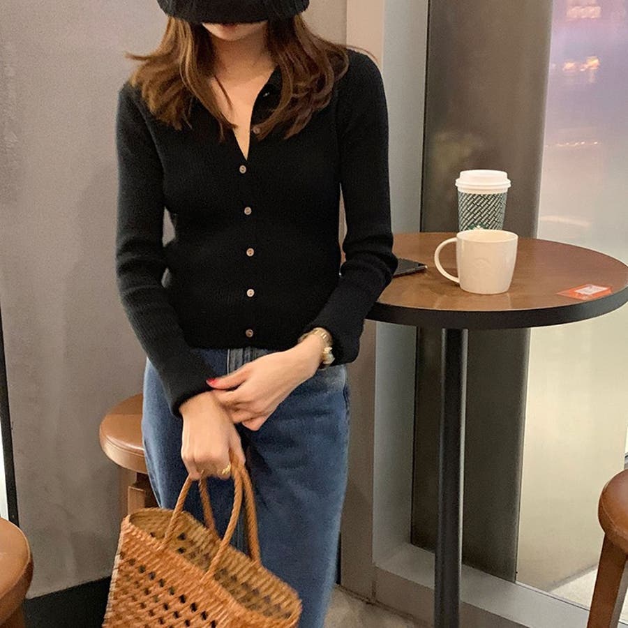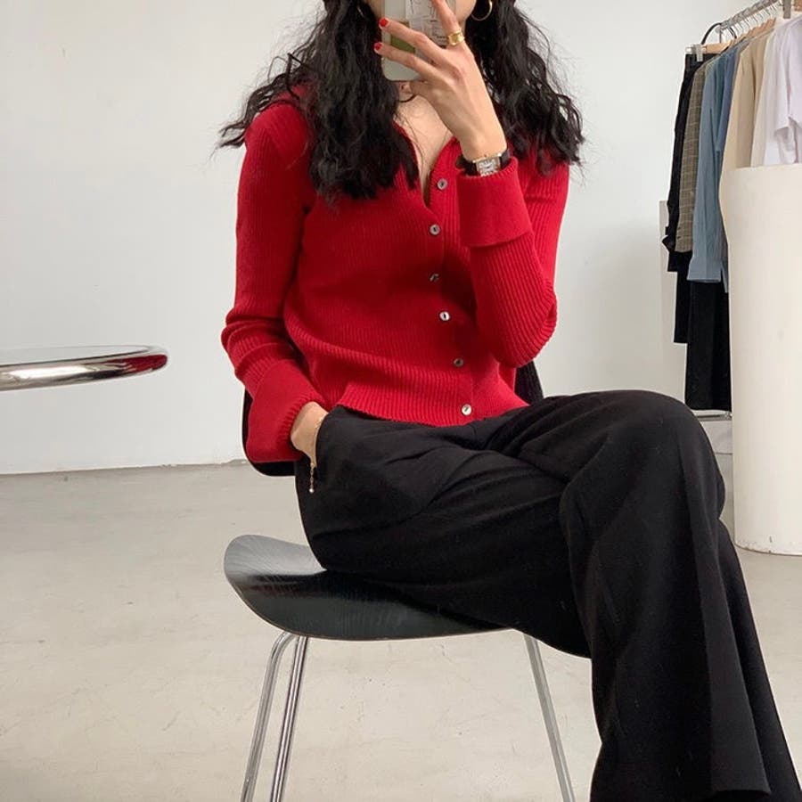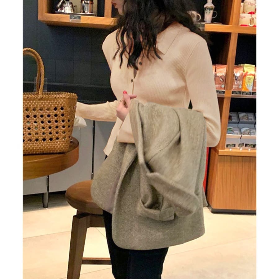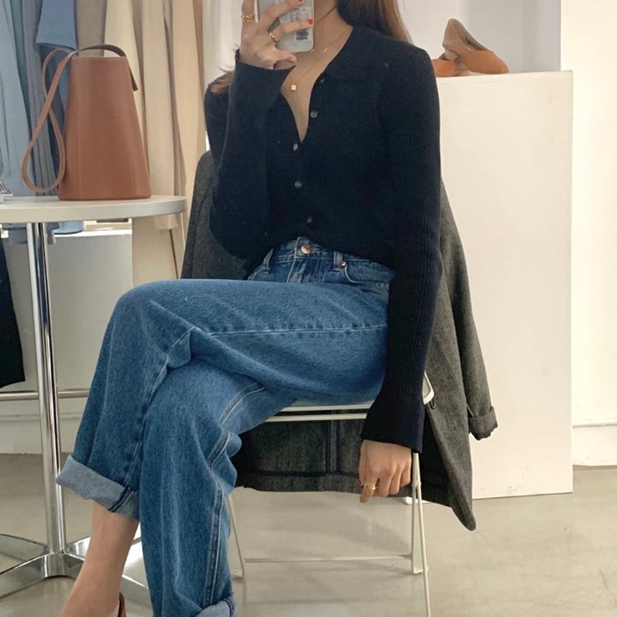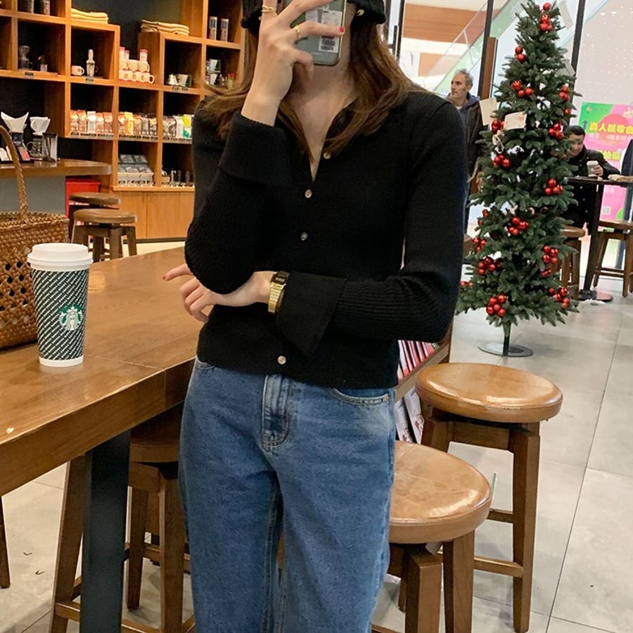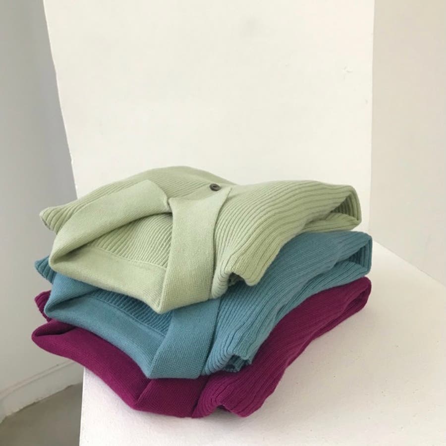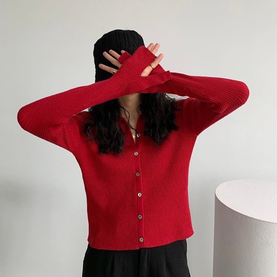 大人 カジュアル きれいめ 韓国ファッション 韓国コーデ オフィスカジュアル ポロシャツ トップス 無地 前開き 長袖 シンプル ベーシック ハイゲージ もちもち 20代 30代 40代 春 秋 冬 カーデ カーディガン