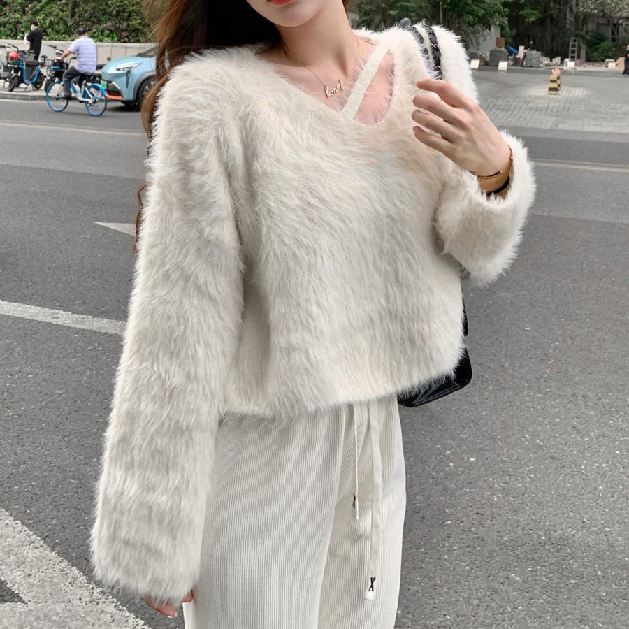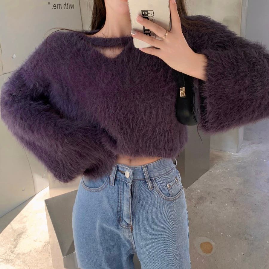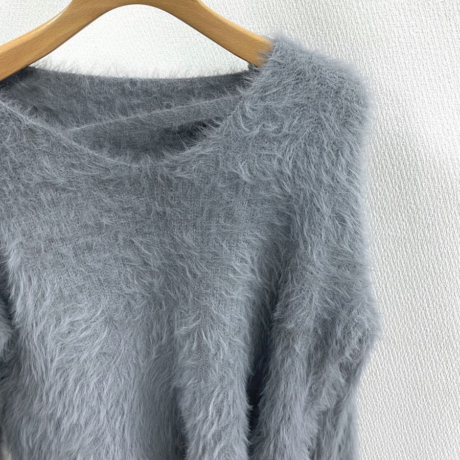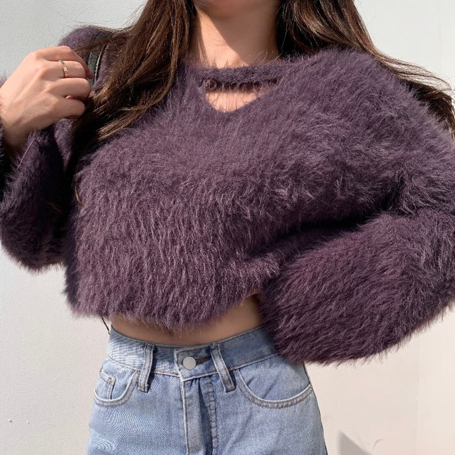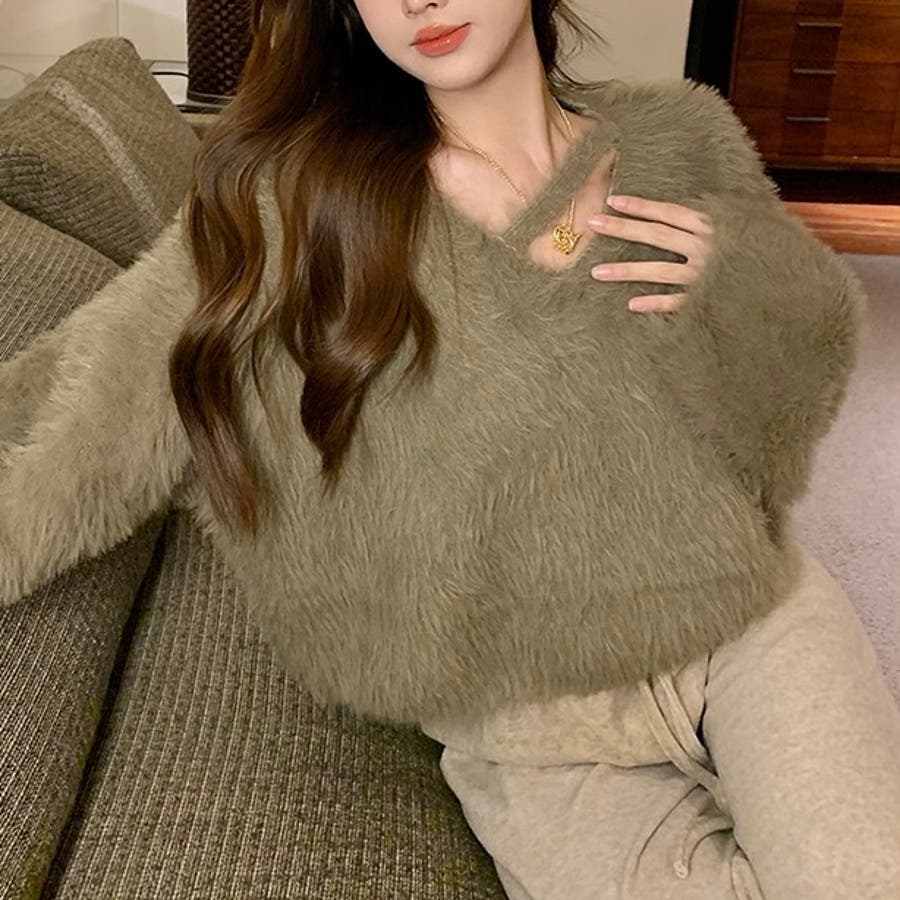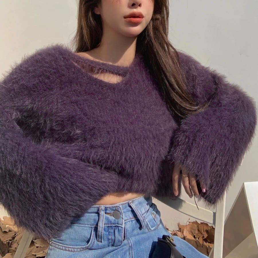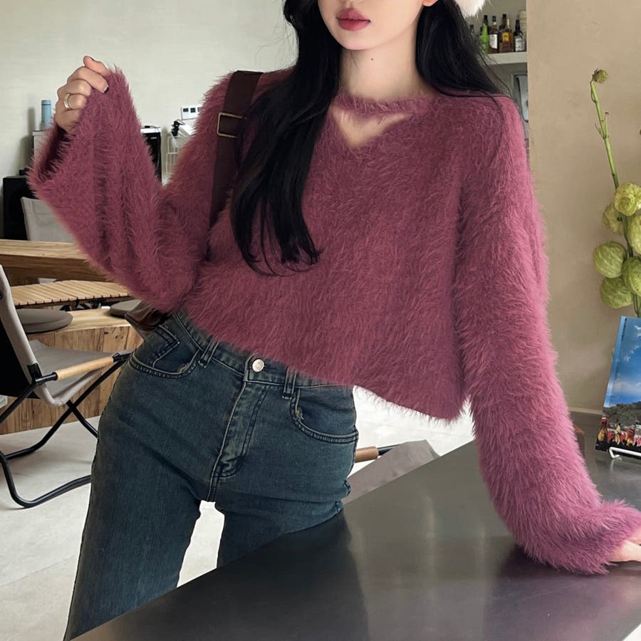 クロップド丈V開きシャギーニット
