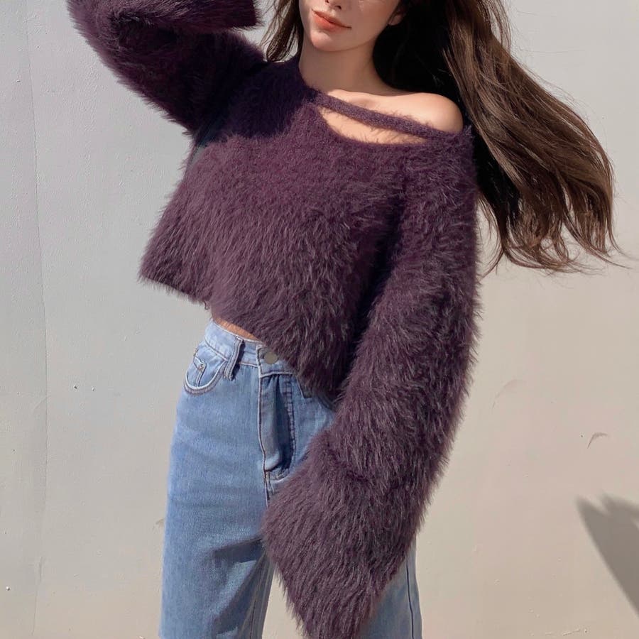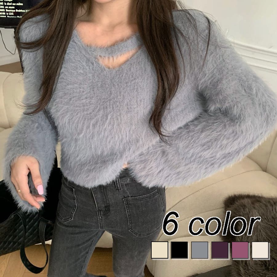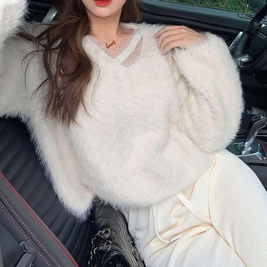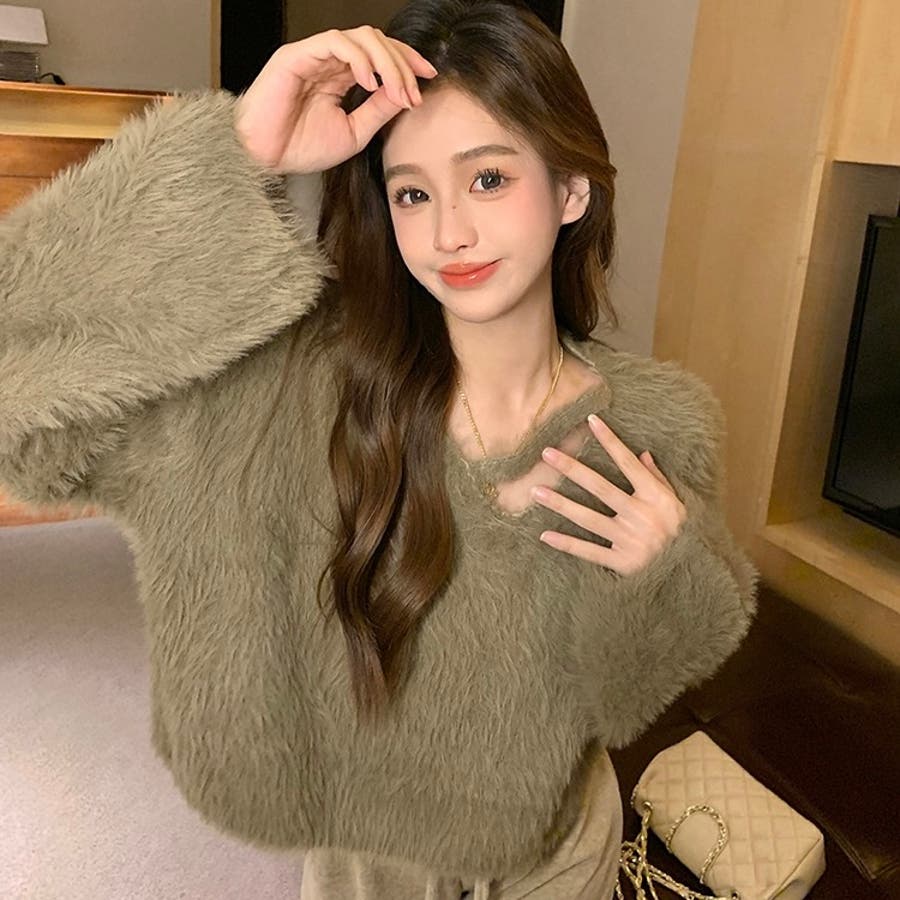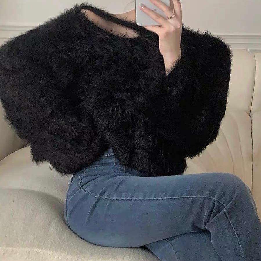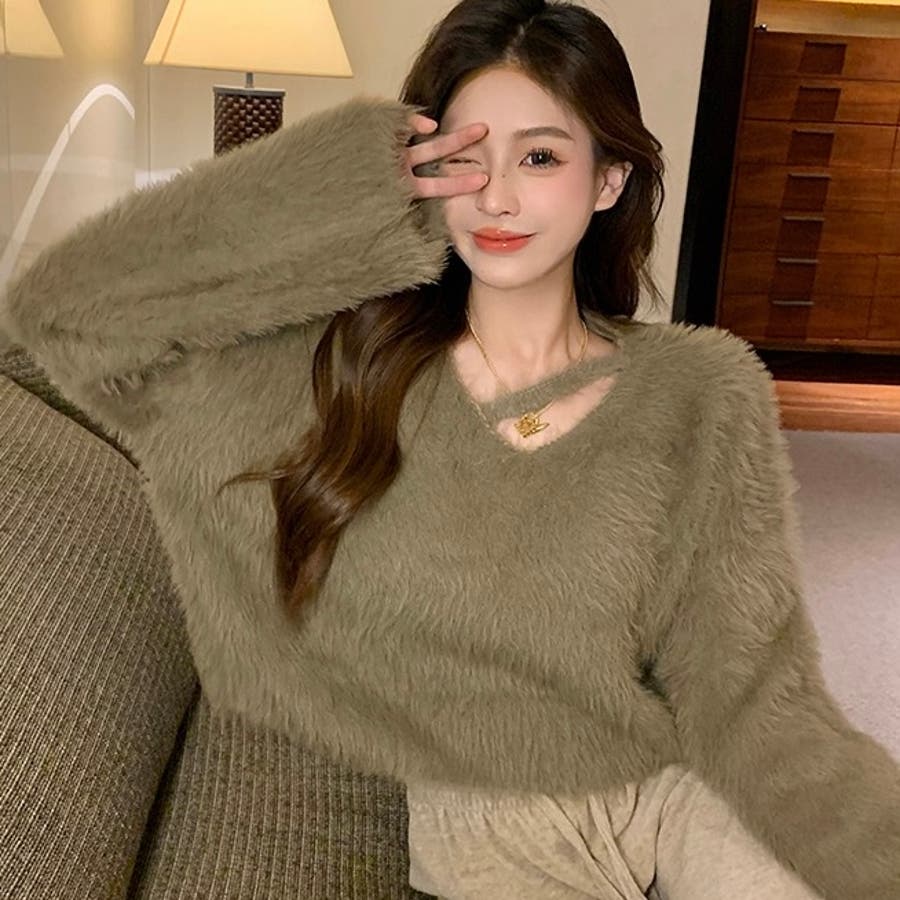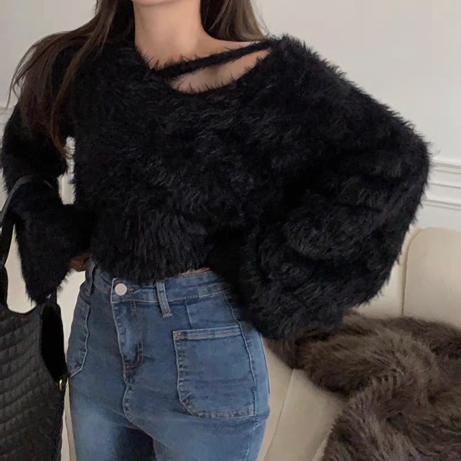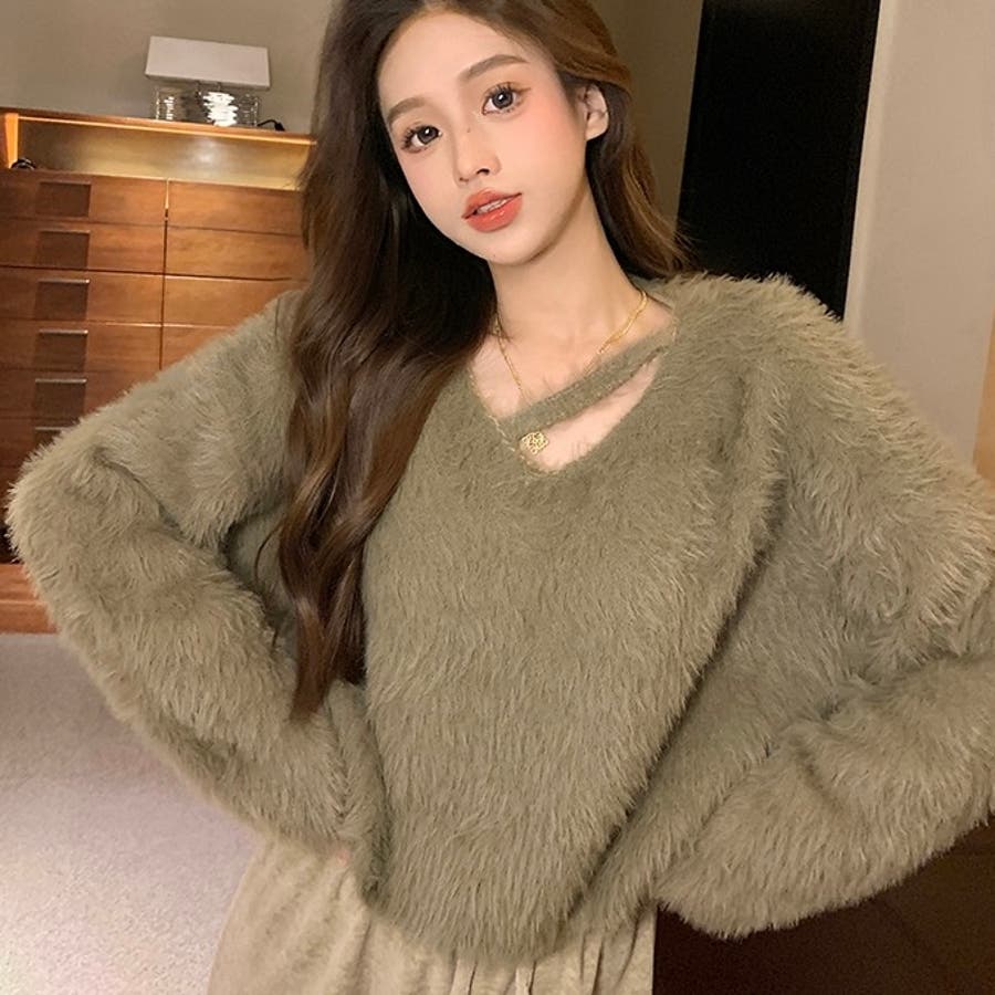 クロップド丈V開きシャギーニット