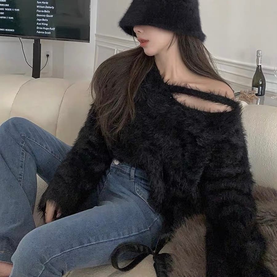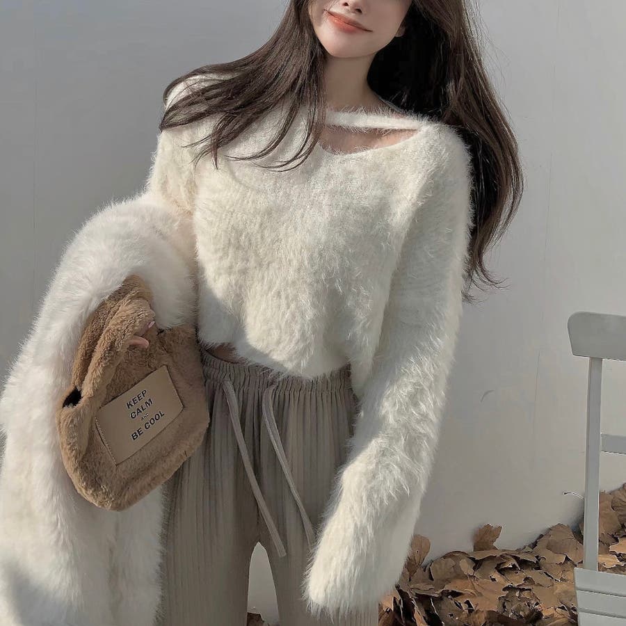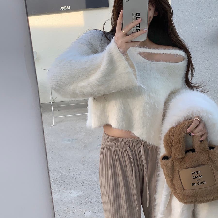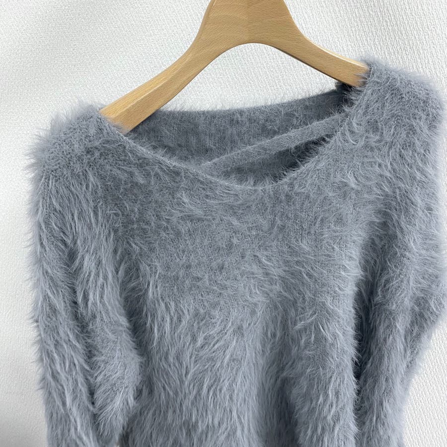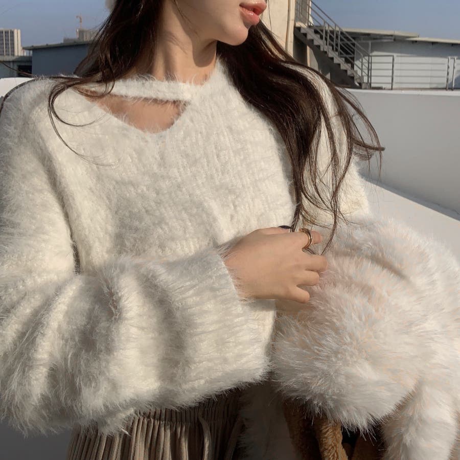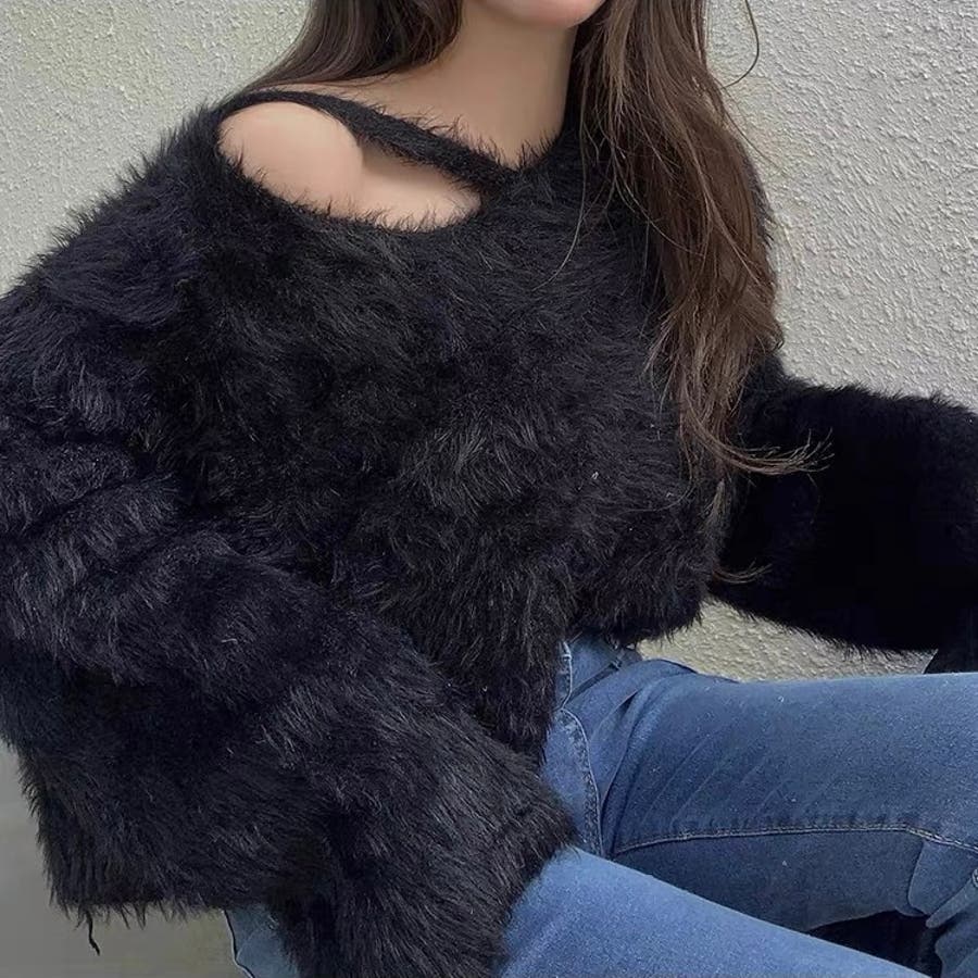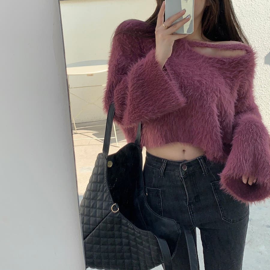 クロップド丈V開きシャギーニット