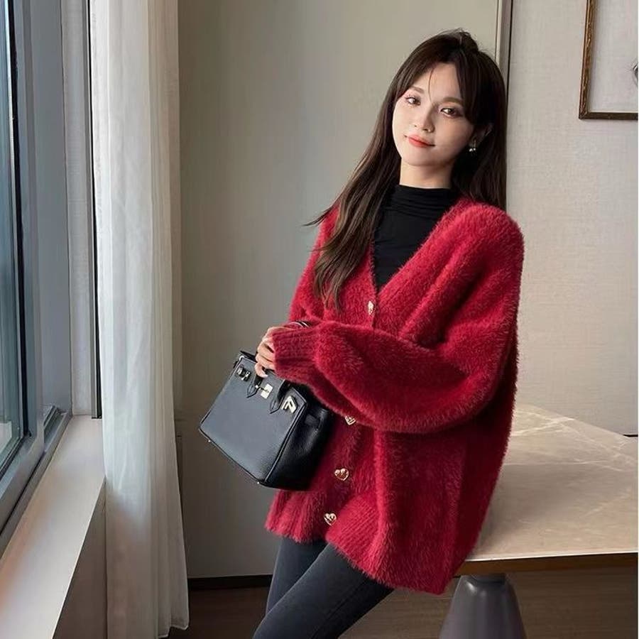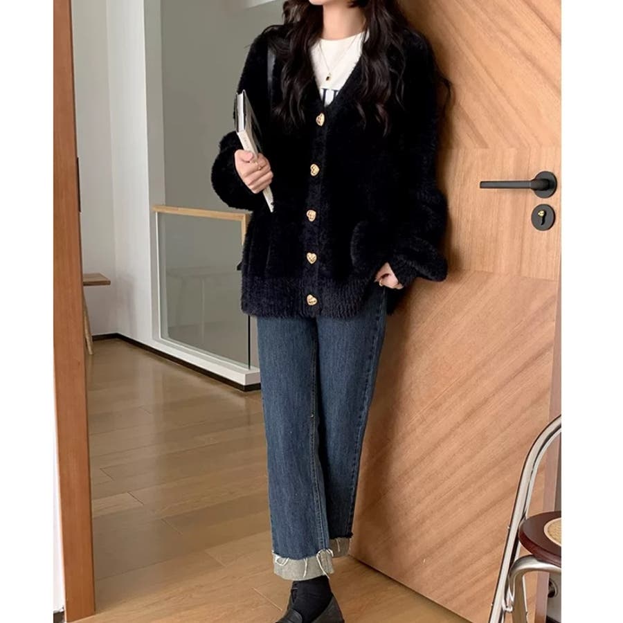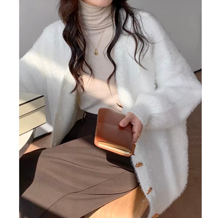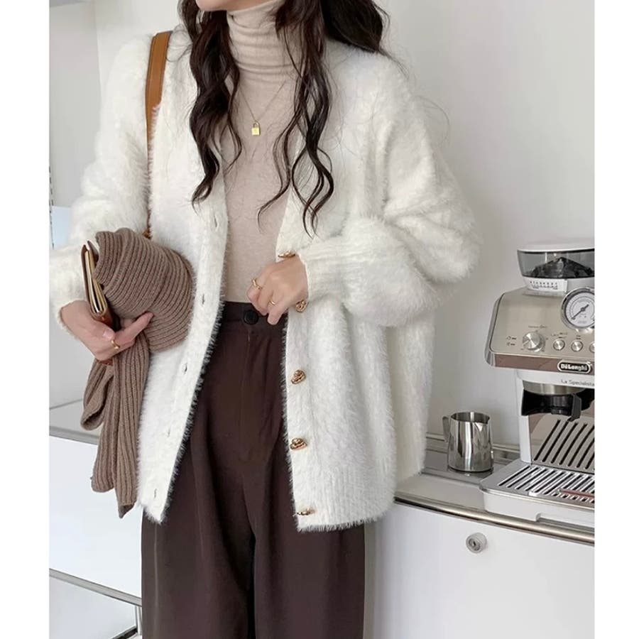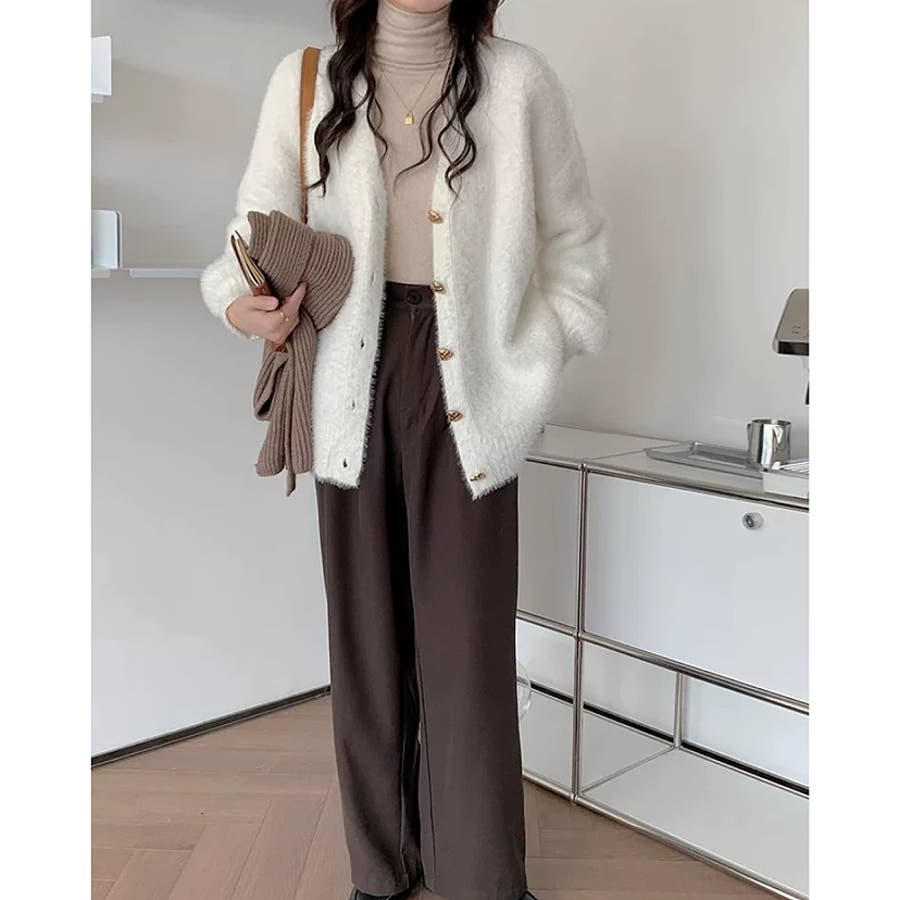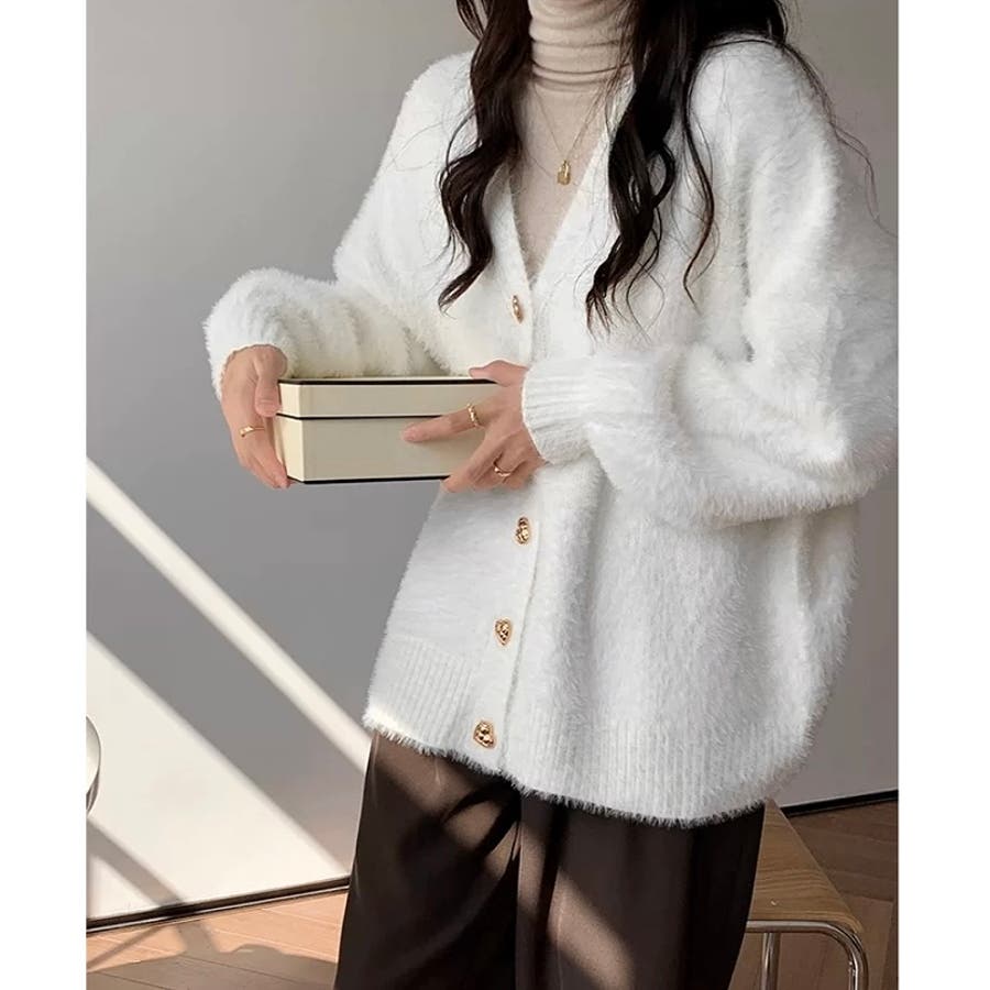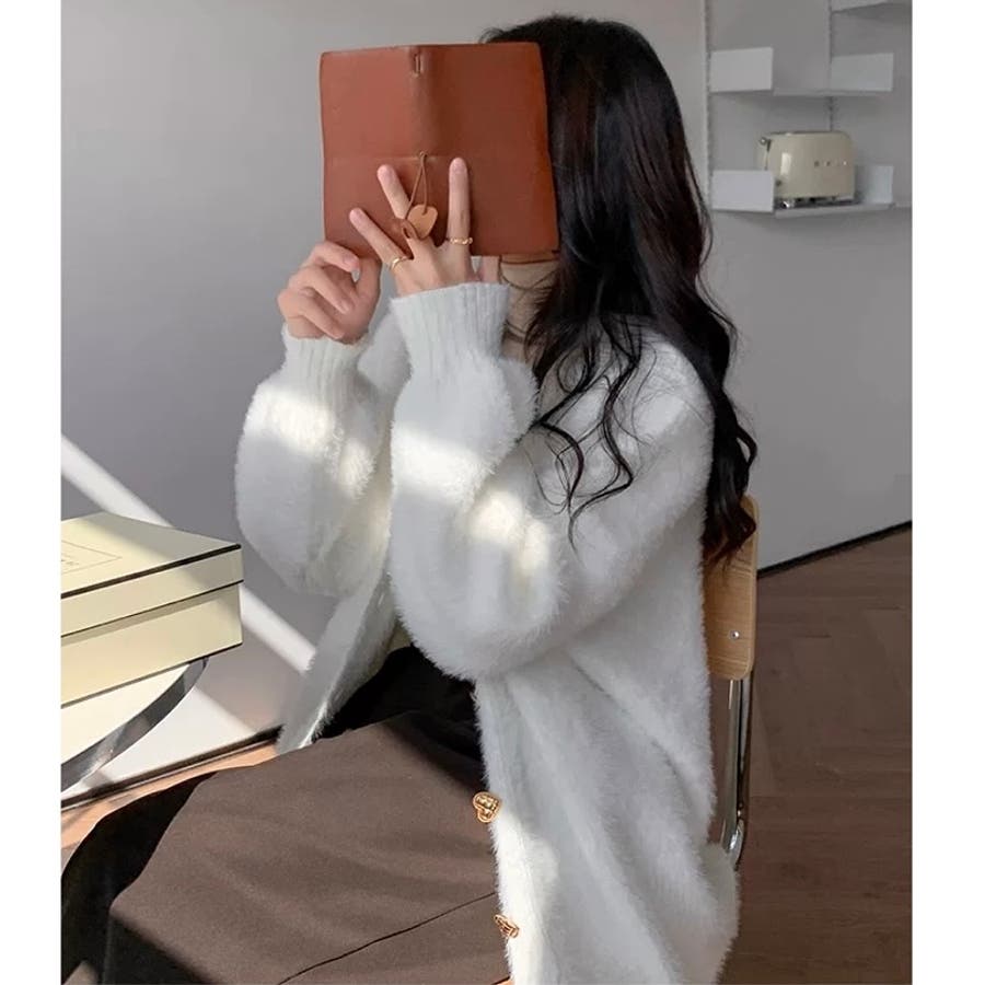 大人 カジュアル きれいめ 韓国ファッション 韓国コーデ オフィスカジュアル Vネック V開き ふわふわ ふんわり フェザー 女子会 ゆったり 秋服 冬服 20代 30代 40代 春 秋 冬