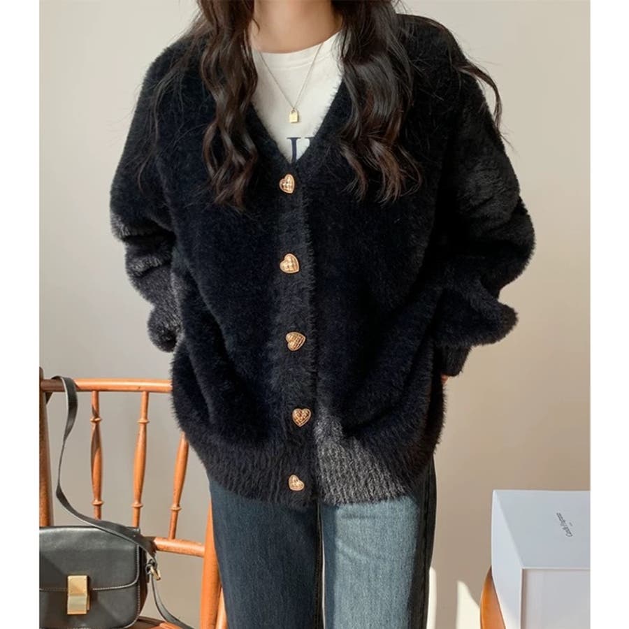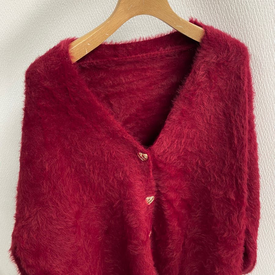 ふんわりとしたタッチのシャギー糸で編み上げたニットカーディガン。