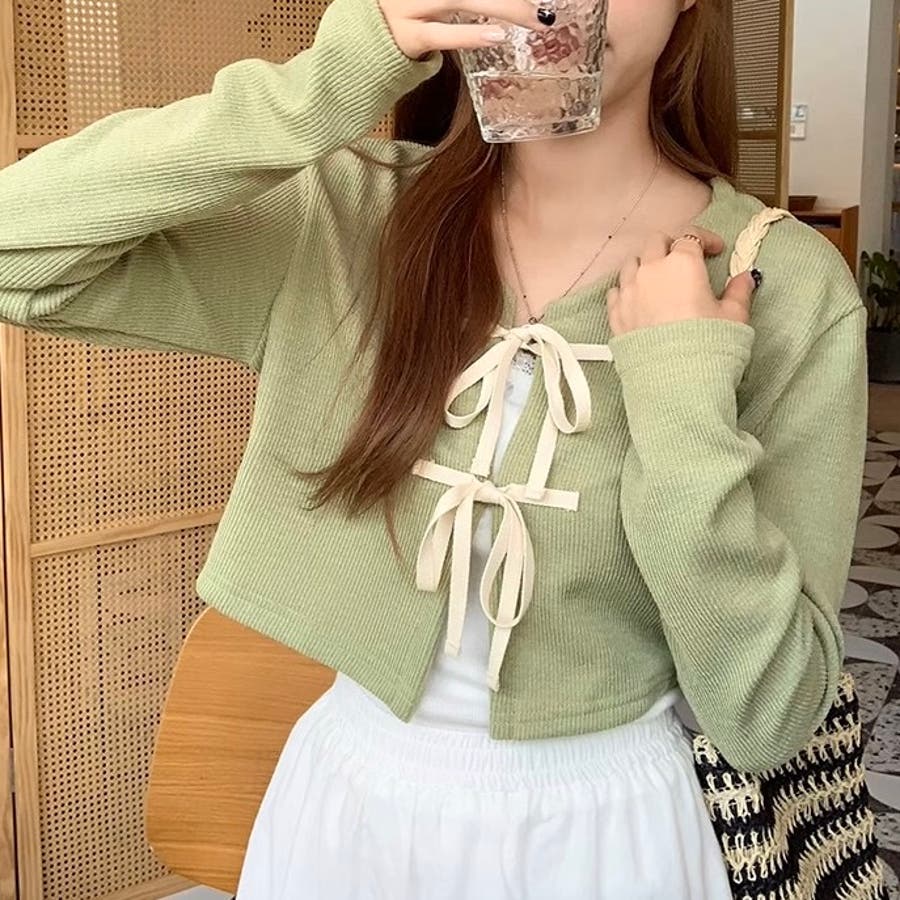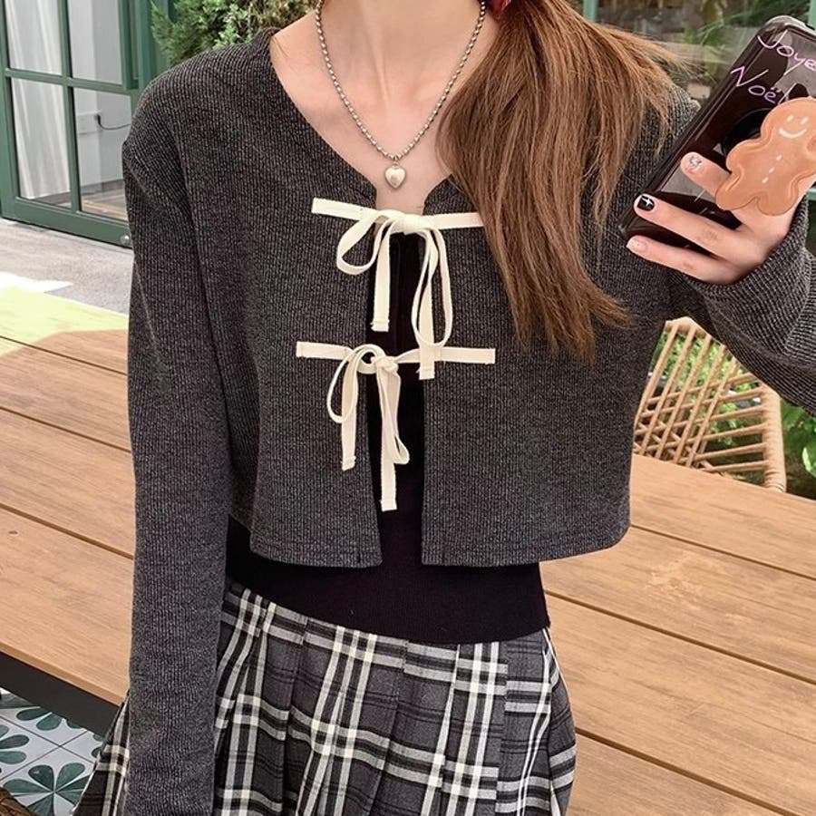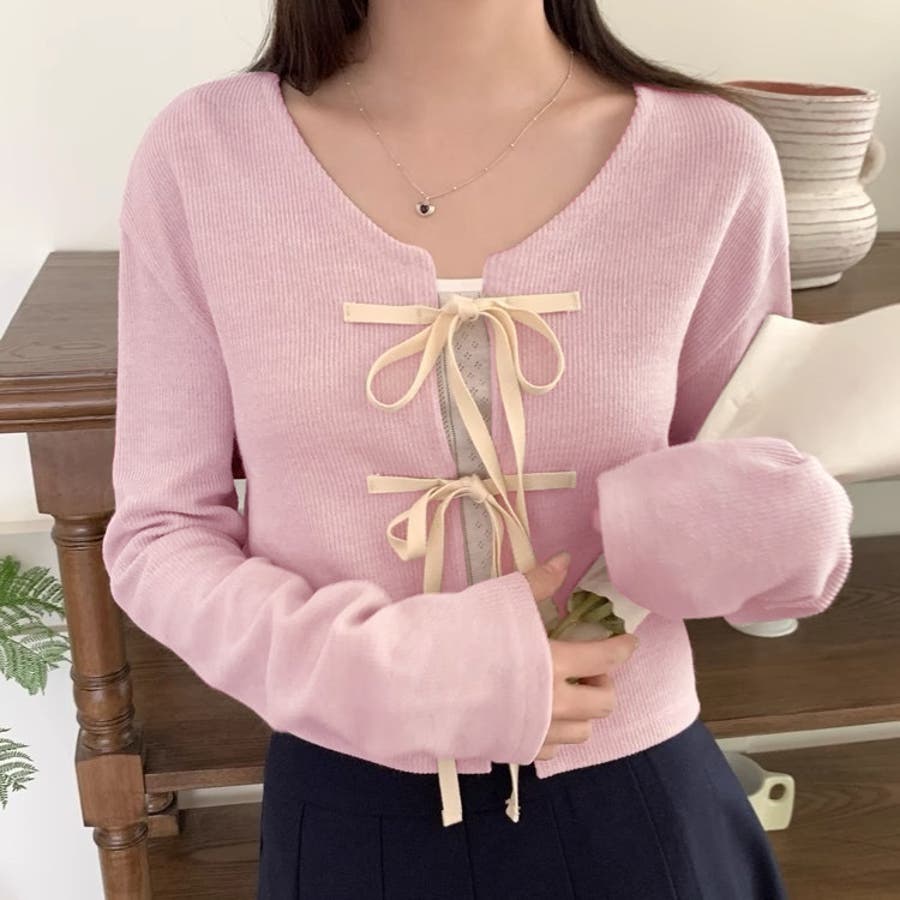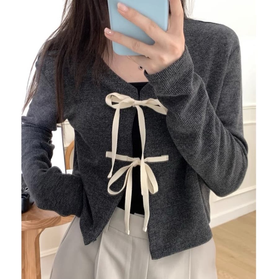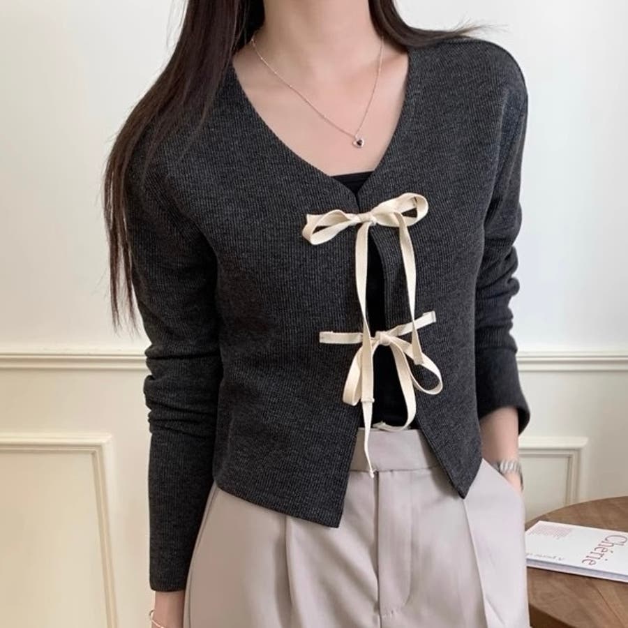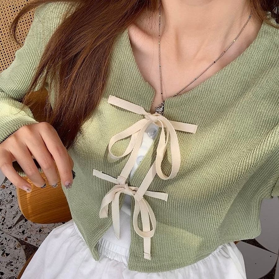配色フロントリボンカーディガン