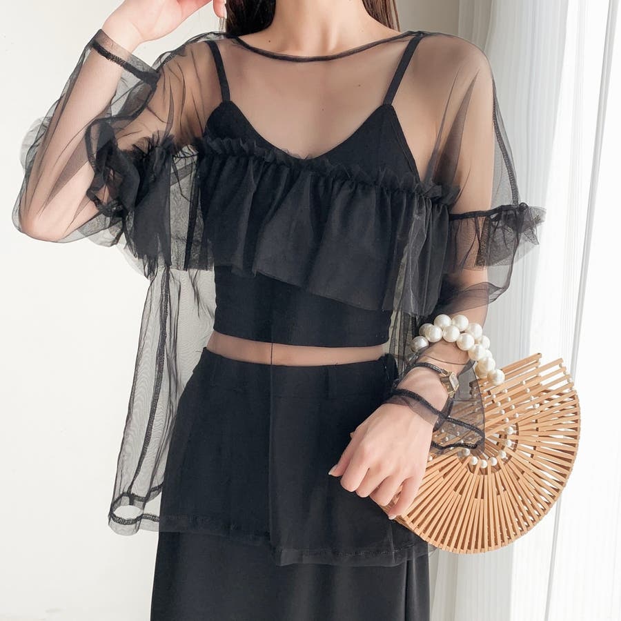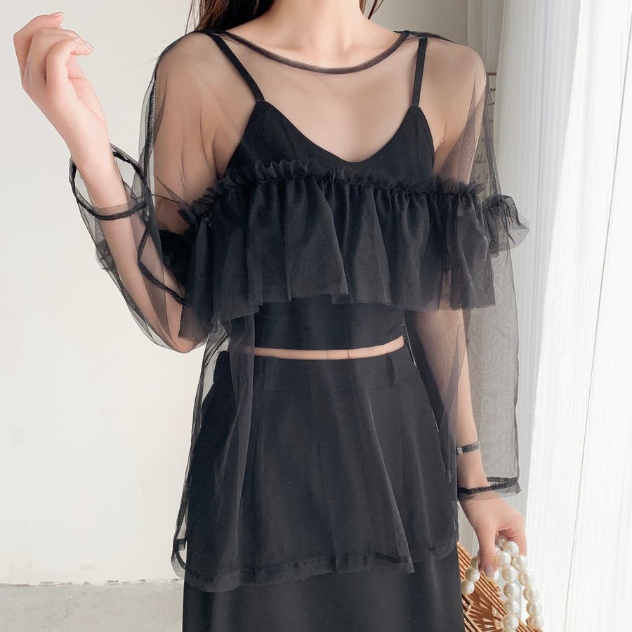 大人 カジュアル きれいめ 韓国ファッション 韓国コーデ 重ね着 レイヤード ティアード チュール 長袖 シアー シースルー ヘルシー 肌見せ Y2K オフィスカジュアル 春服 夏服 秋服 10代 20代 30代 40代 春 夏 秋