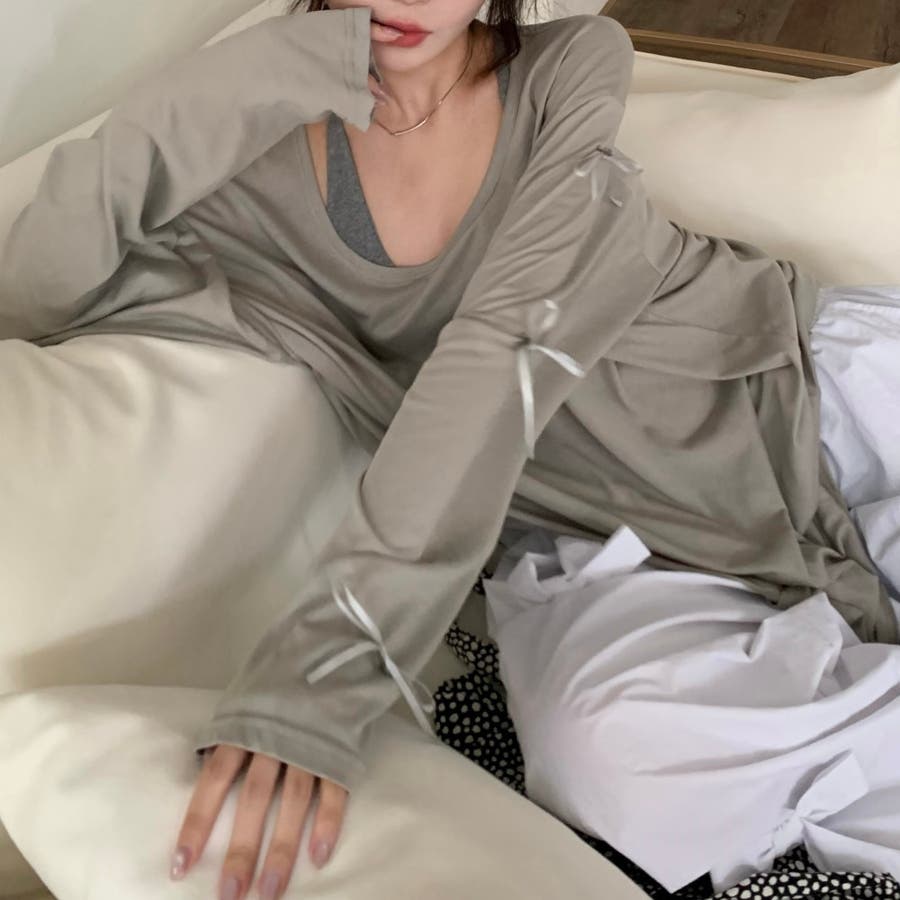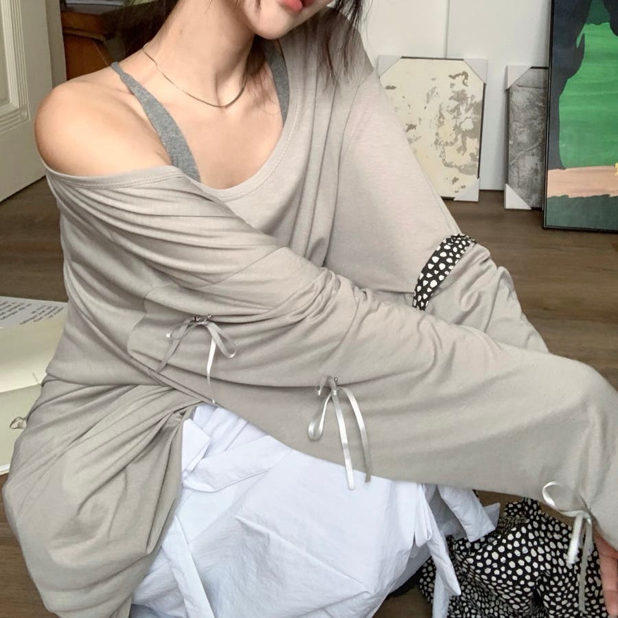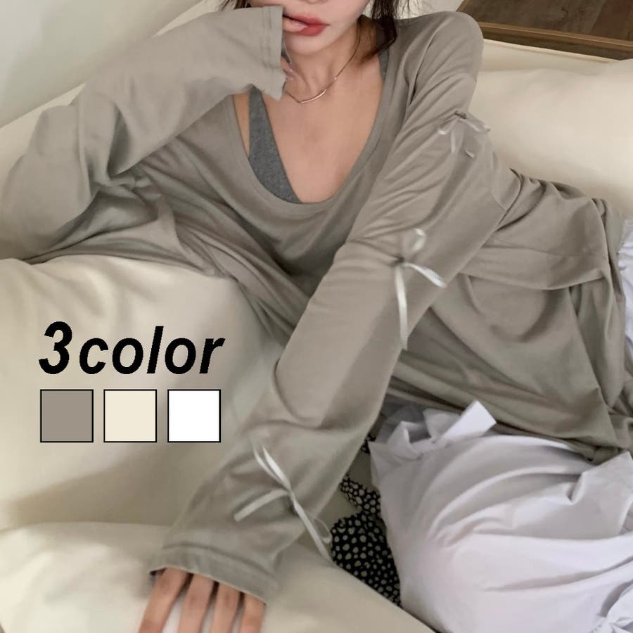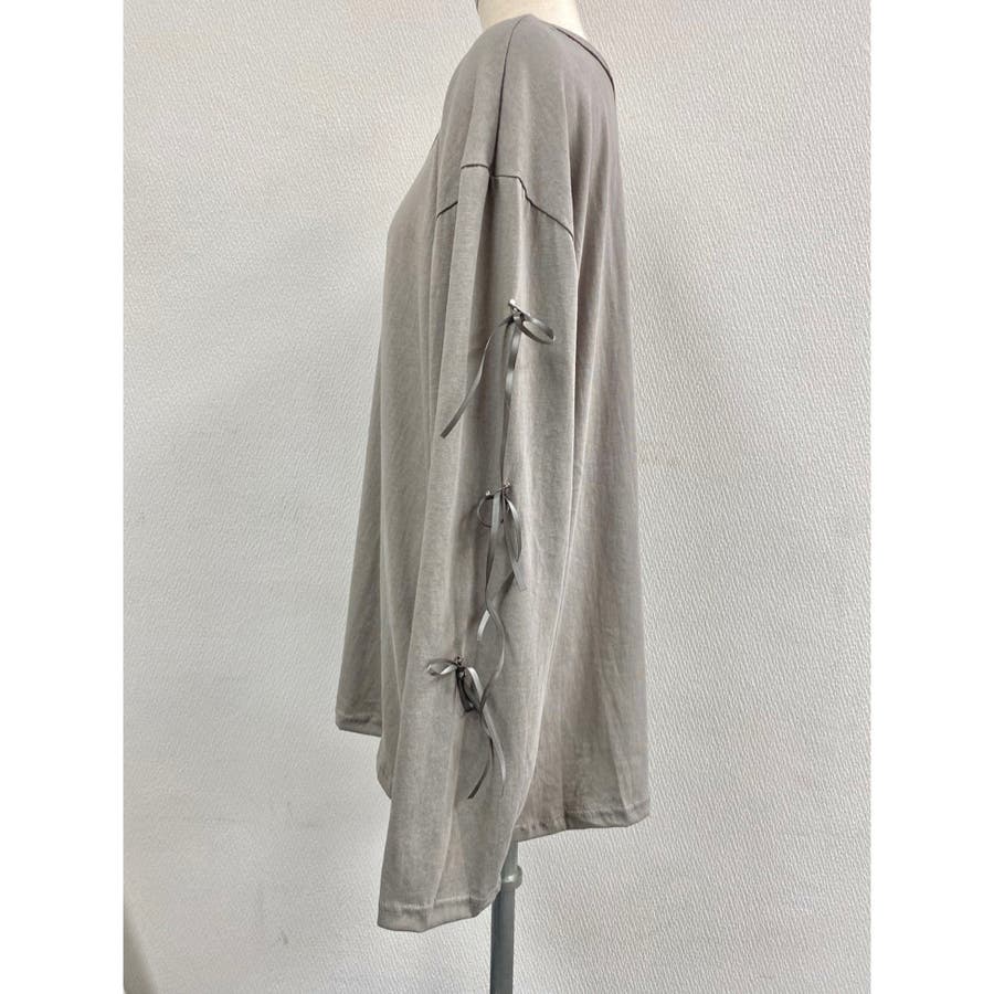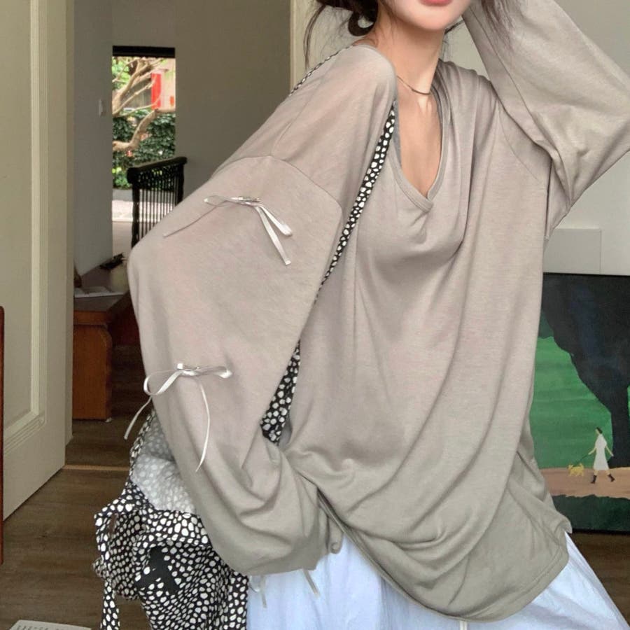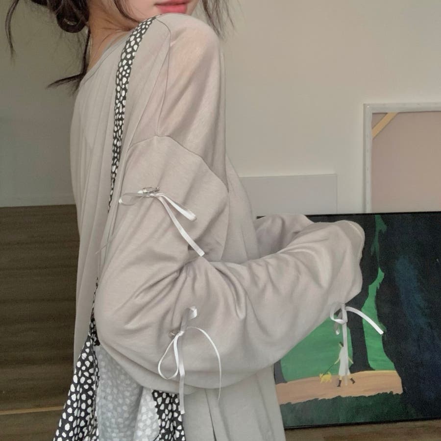 スリーブには可愛らしいリボンが施され、いつものコーデにフェミニンさをプラスします。